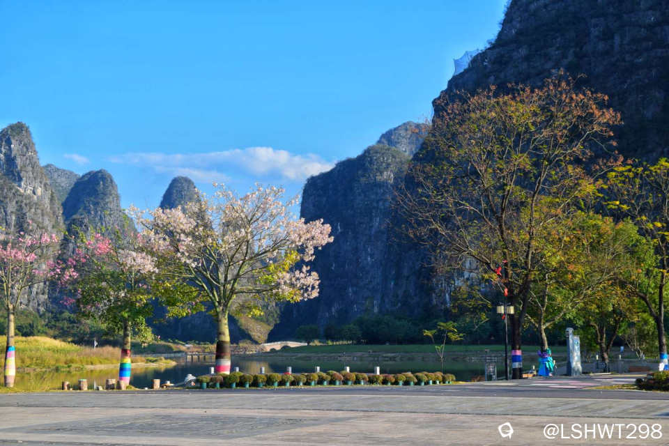 某日,一摩友在贺州富川秀水游览时想探寻如斯夫水上戏台未果(图4~5),电联我也无法精确定位。。。近日周末2天假,天气晴,气温20℃,符合本人中短途摩旅条件,于是想走走富川的新点,自然与那位摩友相约偶遇。。。