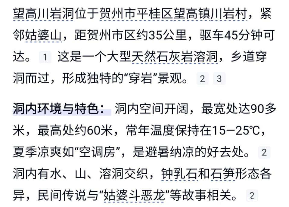 川岩,位于贺州平桂区望高镇川岩屯(简介字略)。AI截屏倒是节省了码字烦脑。。。