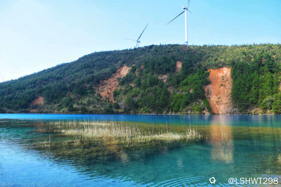 湖水湛蓝如宝石,倒映蓝天白云,仿佛天空之境。站于风车下拍照,又仿佛置身于童话世界。。。