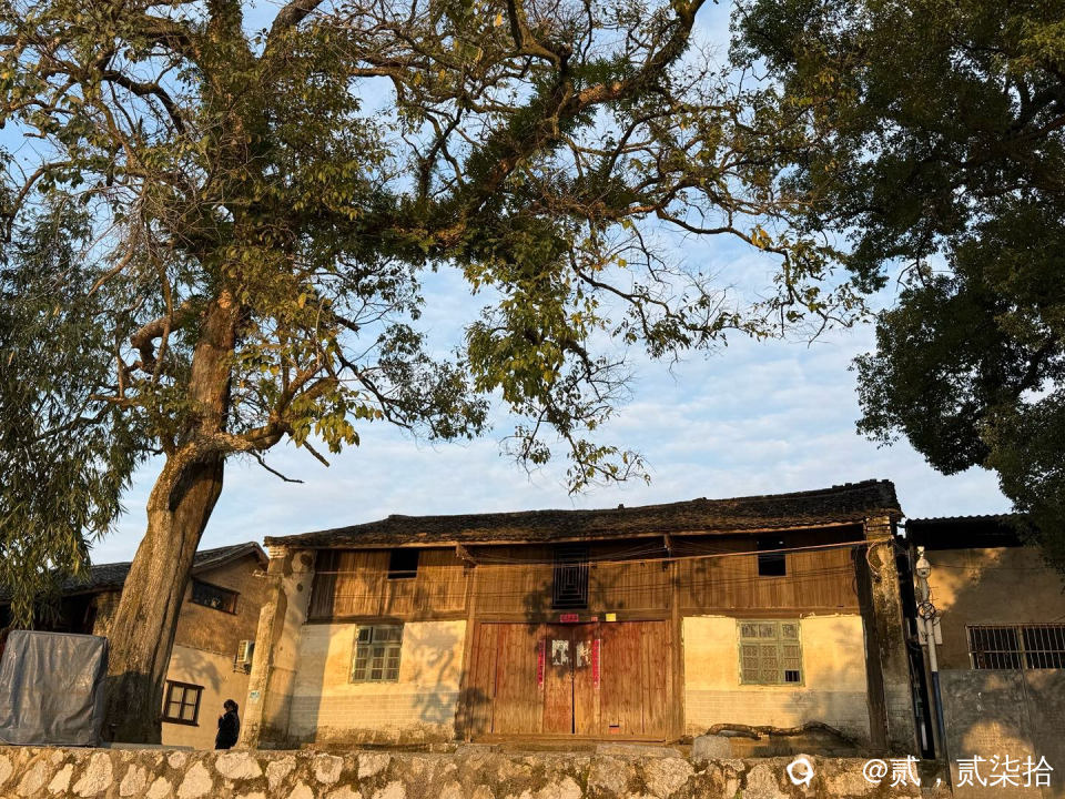 古树,老房子,夕阳西下