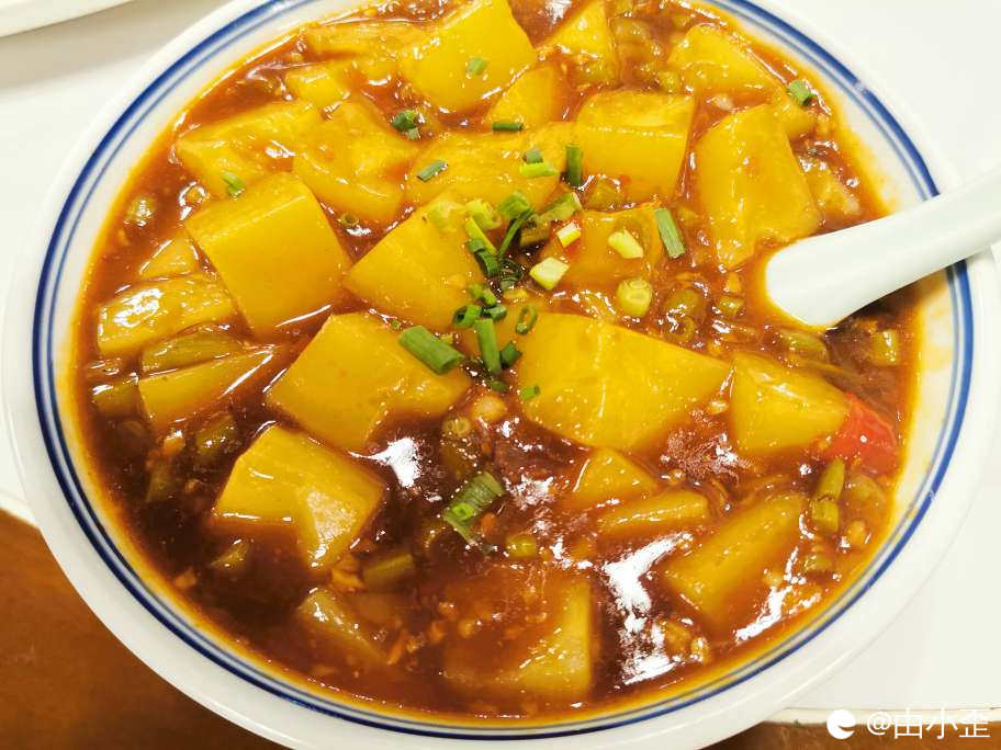 酸炒米豆腐,好多年没有吃米豆腐了,跟记忆中家乡的儿时味道还是有些出入,但是这一盆多汁的米豆腐真是下饭,泡着饭吃,胃口都被撑破了。