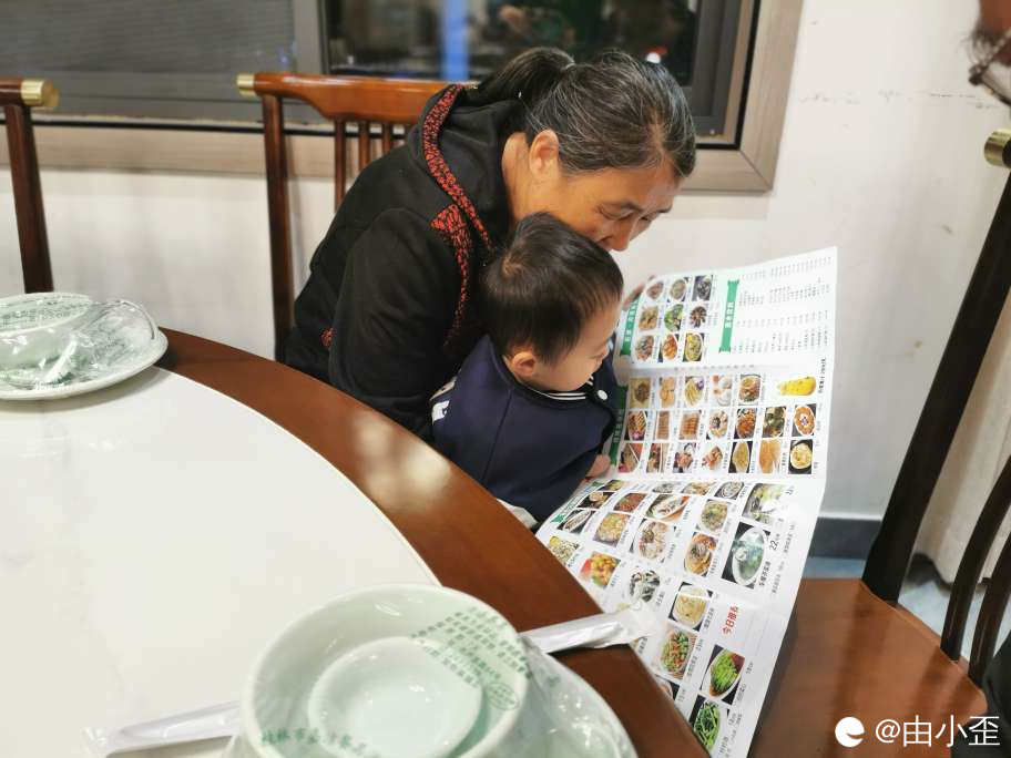 我们要了套餐,安达和外婆装模作样看着菜单,小盆友,你的菜单拿反了!外婆可是读过高中的,在那个年代,还差七分就考上大学了。