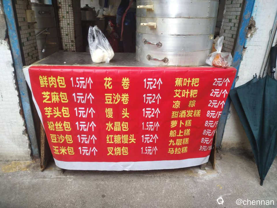 紧挨乐群菜市的小路口,有一个又小又简陋的小店,是做包子馒头和桂林传统糕点的店,开了很多年了,由于又小又不起眼,我住在附近这么多年都没去买过他的东西。前不久,有一天下午在外面逛得肚子有点饿了,血糖有点低,急匆匆想买点东西来填肚子,看到他的芝麻包才1块钱一个,就买了一个来吃,本以为这种店做的东西味道肯定比不上马路边那些品牌包子店,谁知非常好吃,那芝麻酱调的不干不稀,量非常足,一口下去就感觉到那种浓郁的芝麻香,香甜可口,难以言表,之前从没吃过这么好吃的芝麻包,自此,我就成了这个店的常客。发现他不仅芝麻包做得好,还擅长做各种传统小吃,我小时候最爱吃的那种粽子叶圈起的蕉叶粑,他那里也有,其他的一些小吃我也叫不上名字,发几张图让坛友们自己去点评。