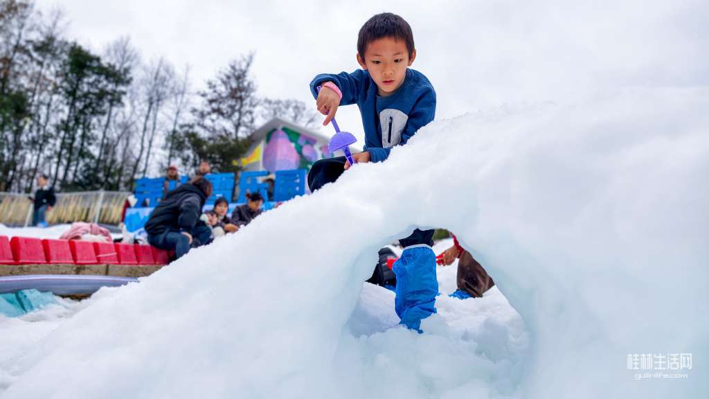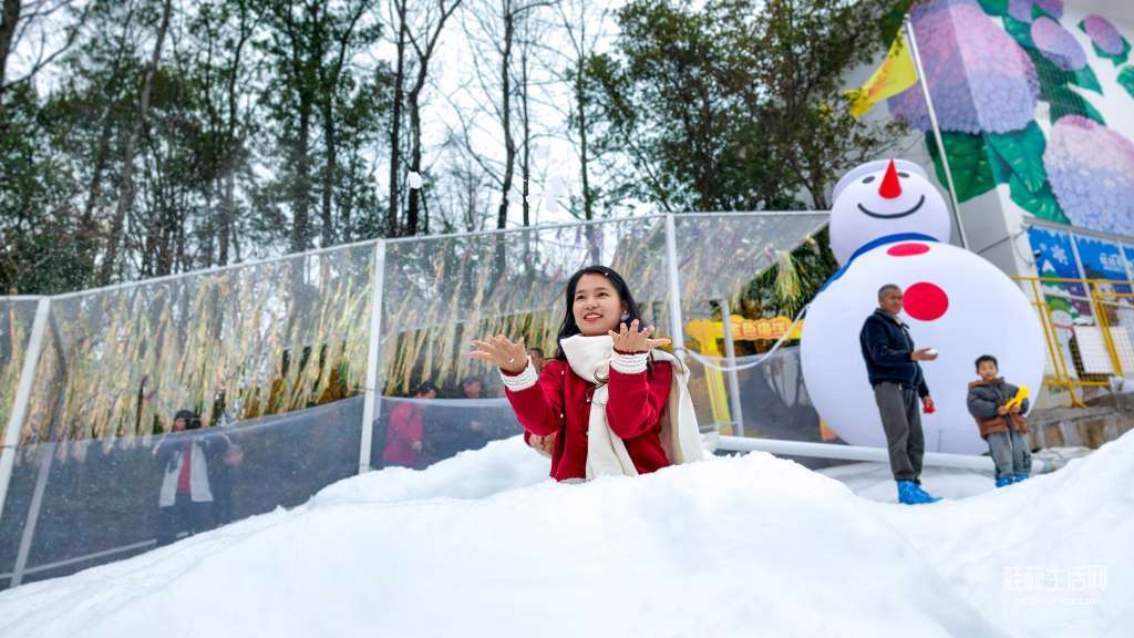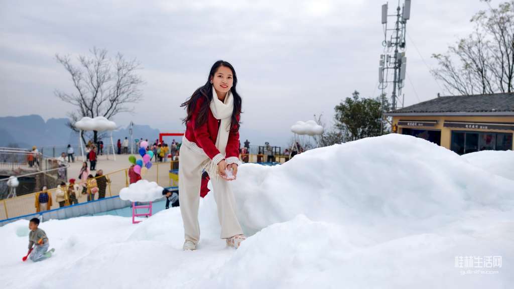 桂林市尧山景区,打造了一个雪山场景,山上的冰雪世界让人仿佛来到了北方的冰天雪地。孩子们开心的都玩疯了,在雪地里打闹玩耍,玩得