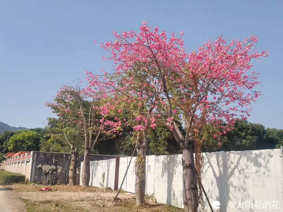 这个季节异木棉开的好漂亮,这个植物真的太特别了,下面的树干像花瓶,上面全部都是花没有叶子,火红火红的看起来好喜庆……