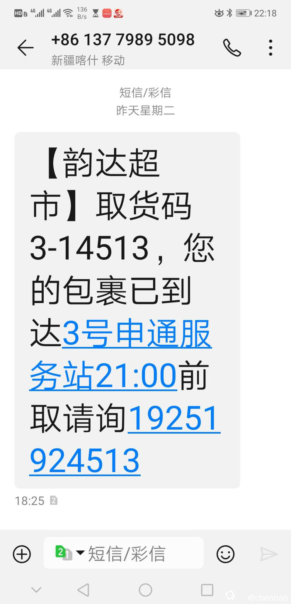 今天收到一个短信,叫我去附近驿站取快递,全靠我最近网购的东西全部都到货了,确信这绝对是骗子的一个套路。