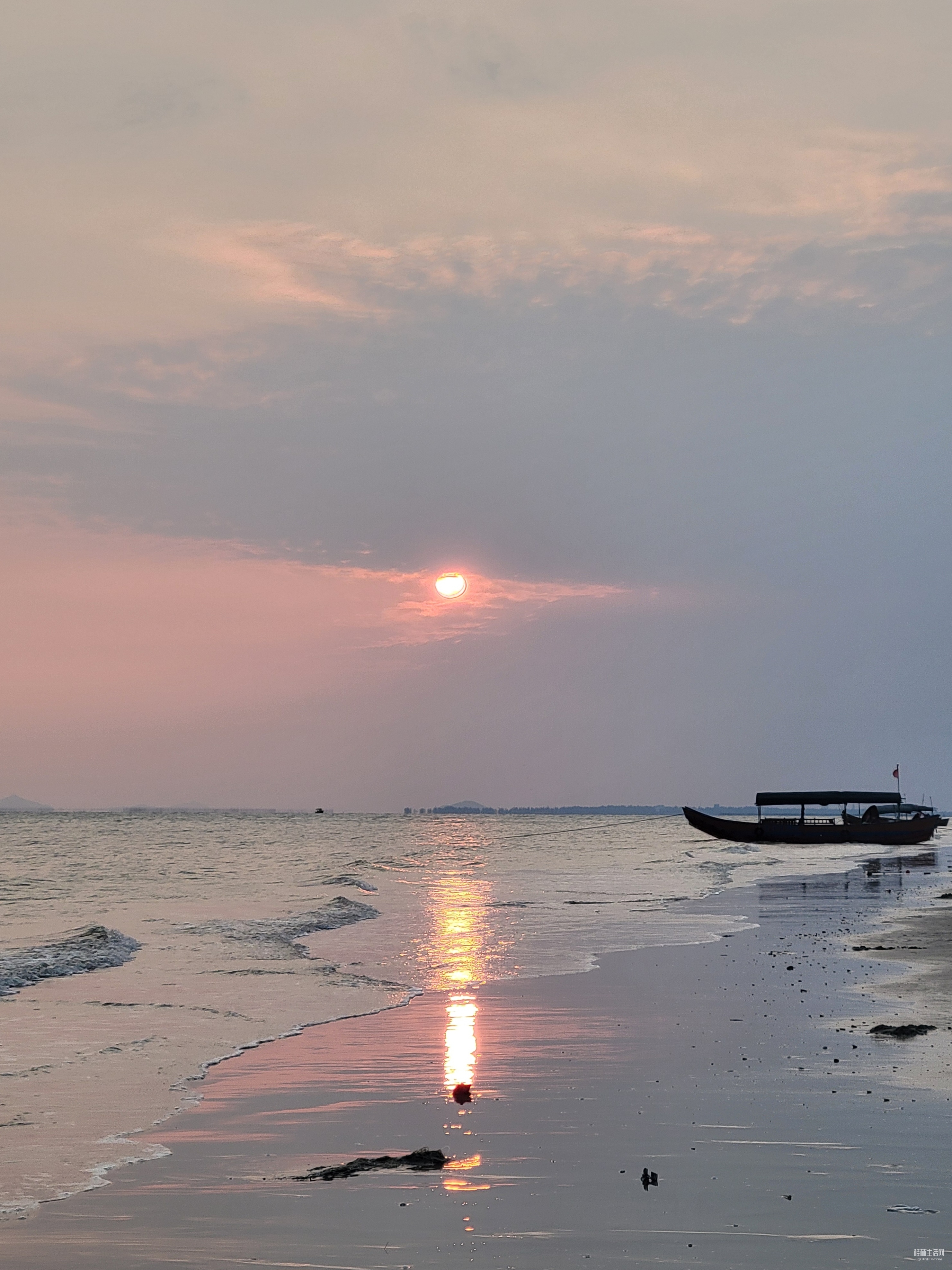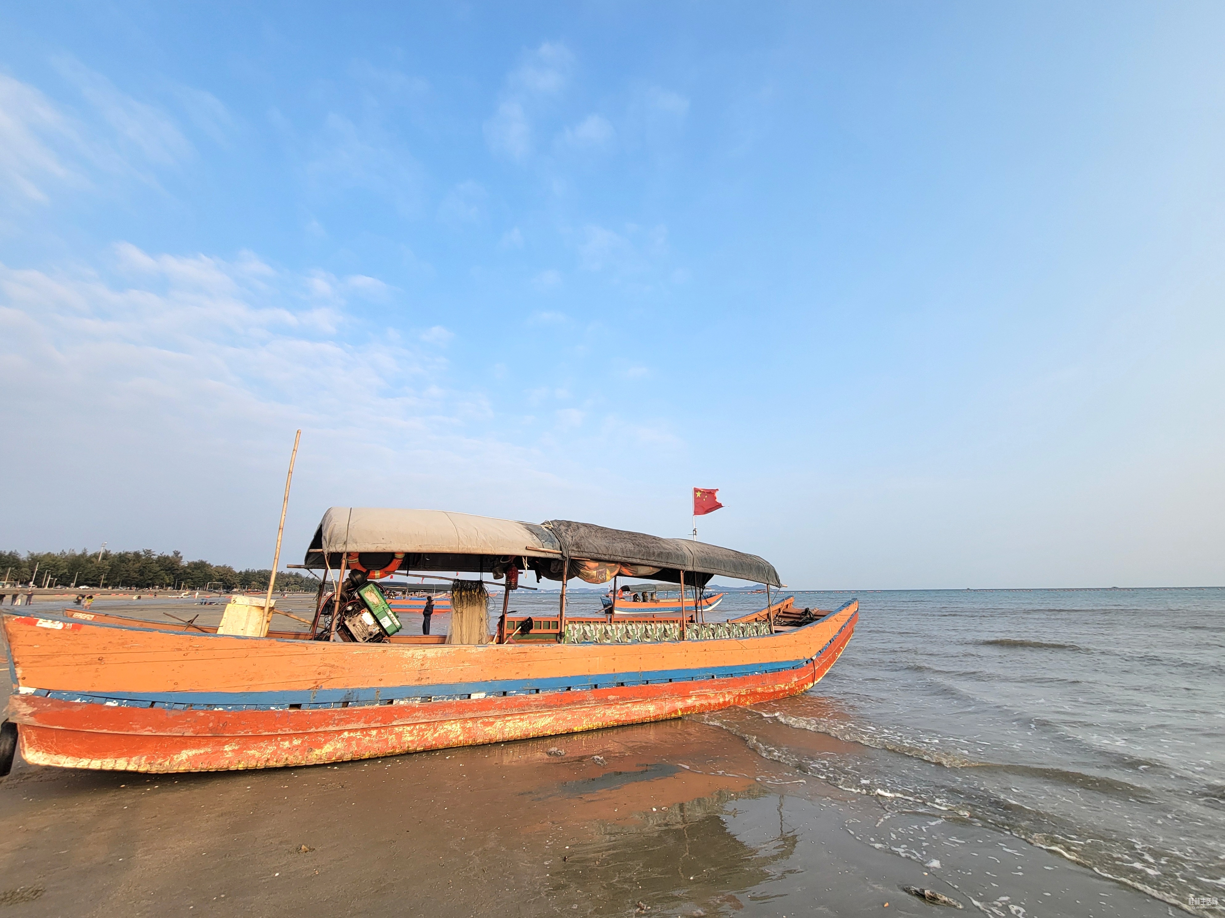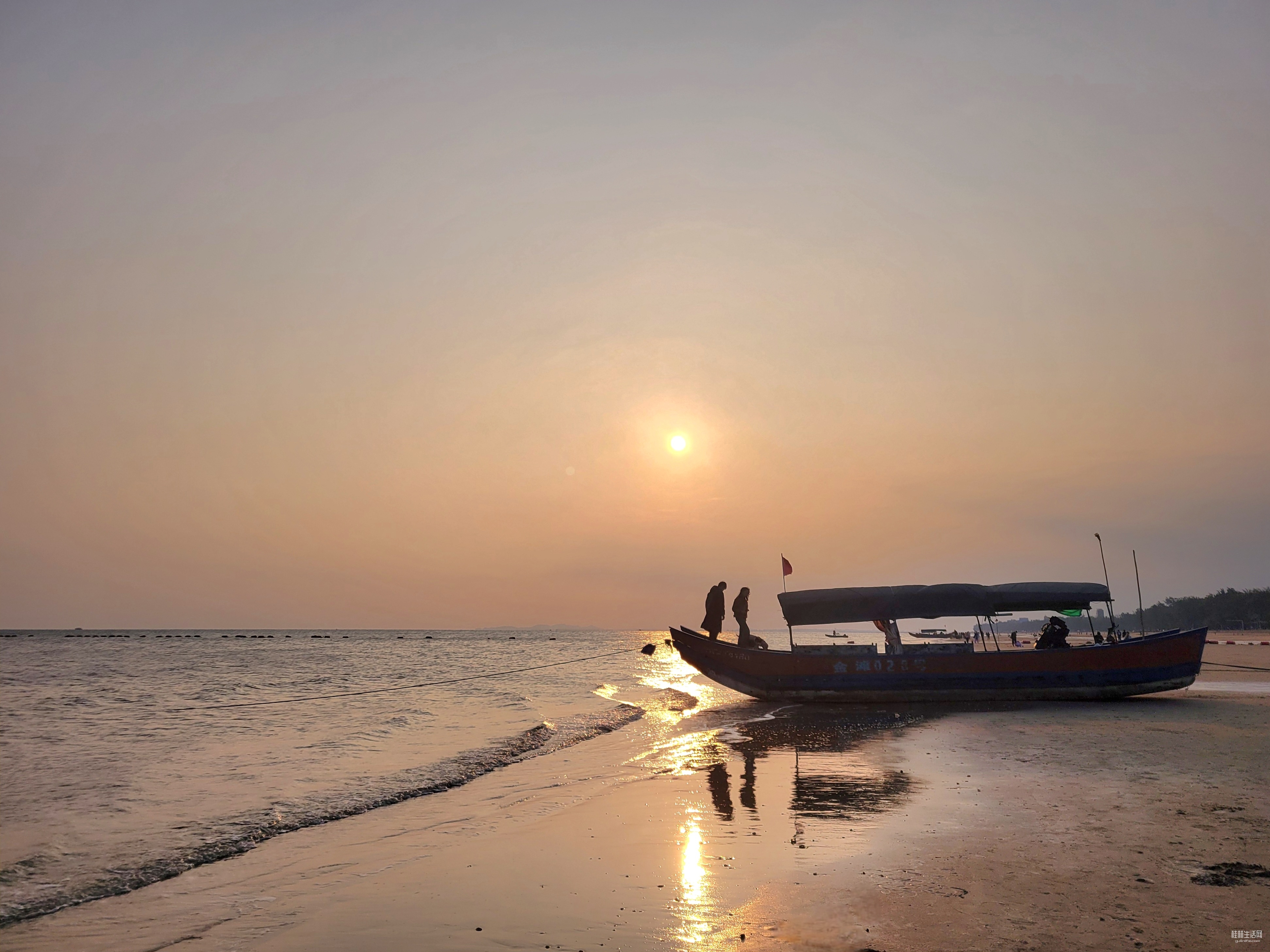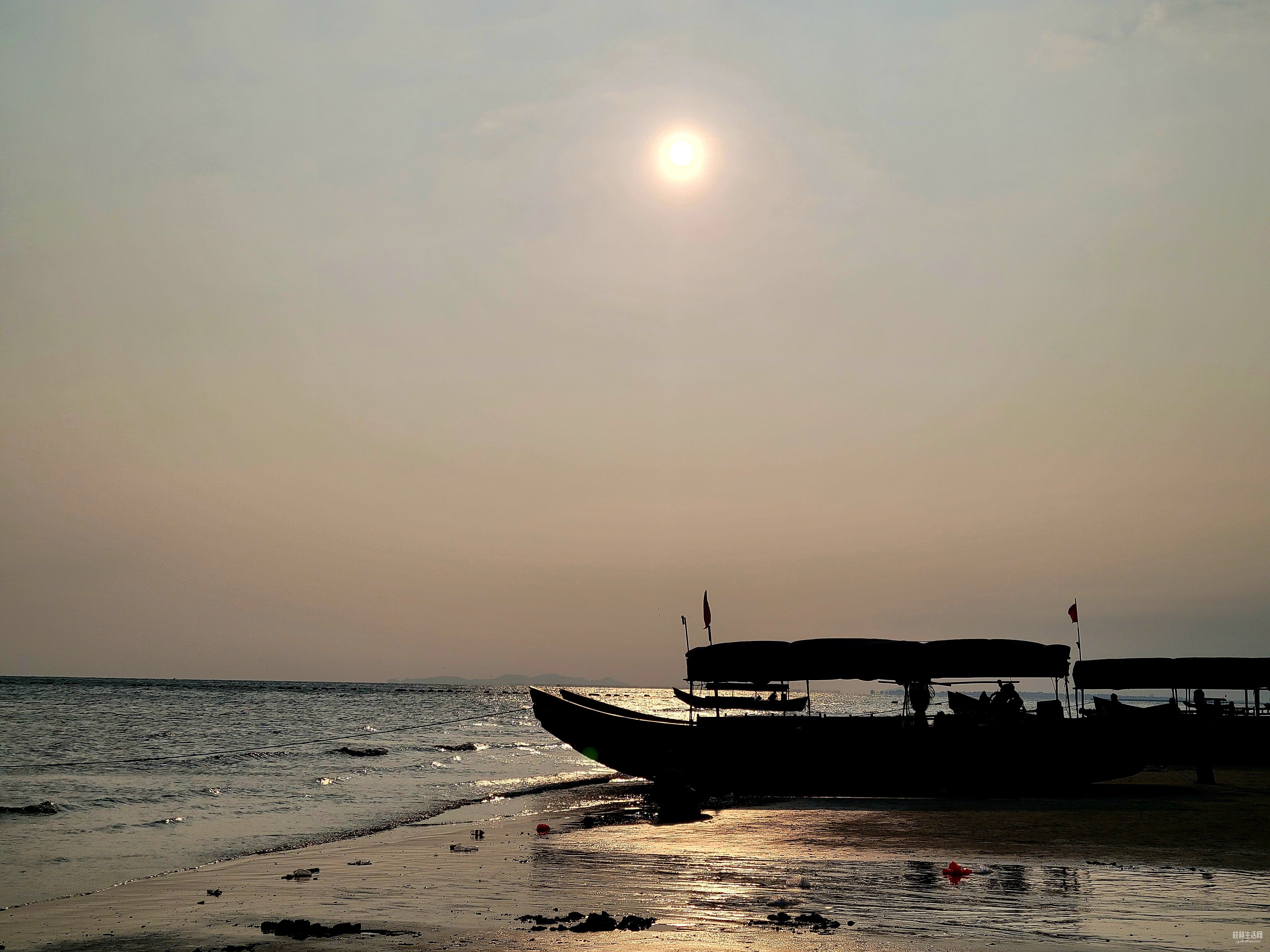 远处货轮缓缓推开发烫的海平线,