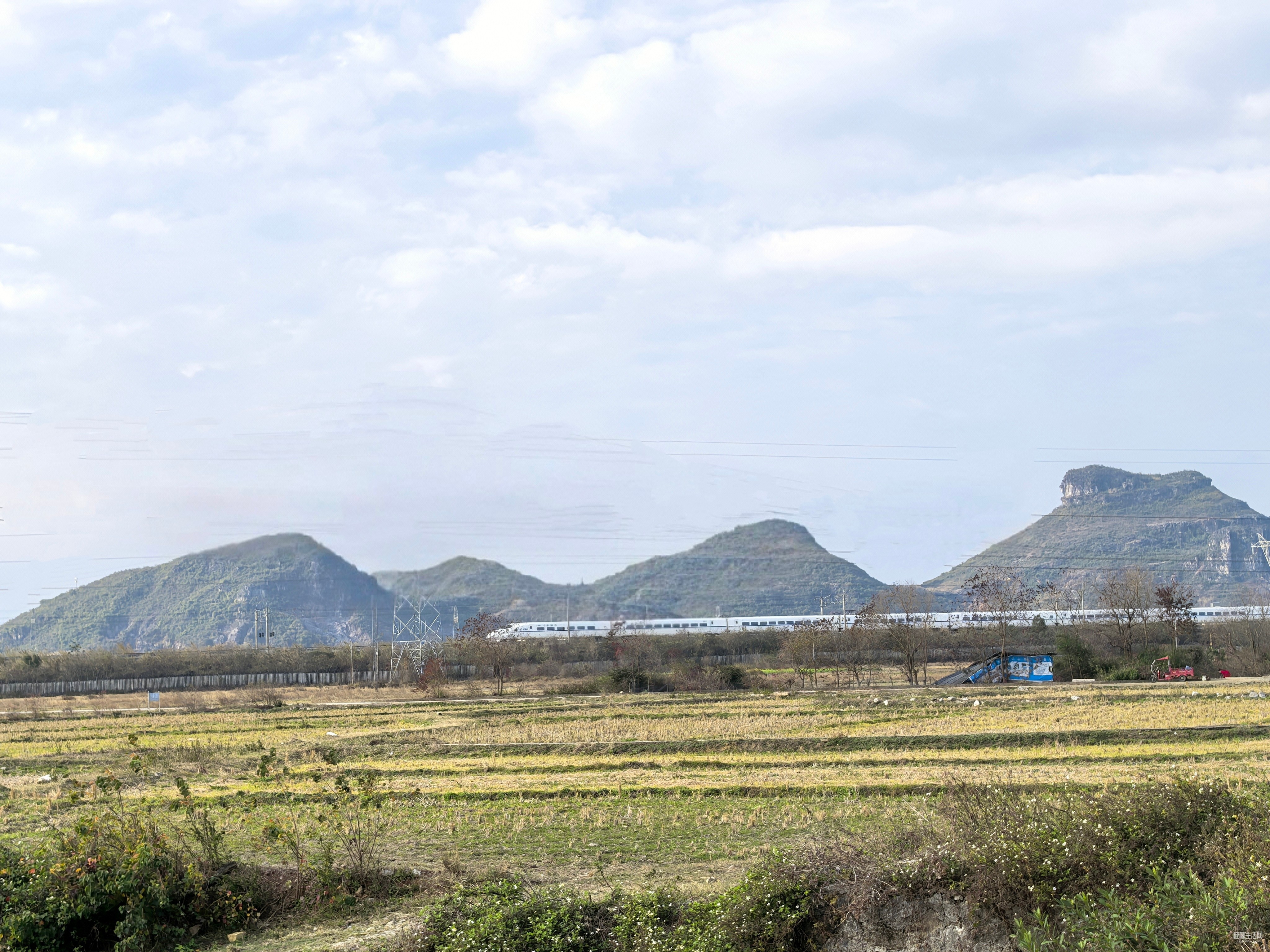 村后有一座3孔桥,也不知道叫啥名,风景还不错;远处时不时有飞驰而过的动车,像一条穿梭在乡野里的白色游龙;与阳光撞了个满怀。