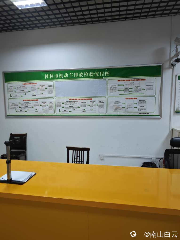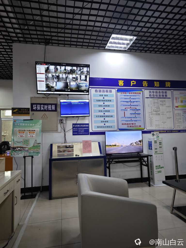进入车检所,工作人员叫下车,交钥匙,三角架,上线检测。车主去服务大厅缴费。