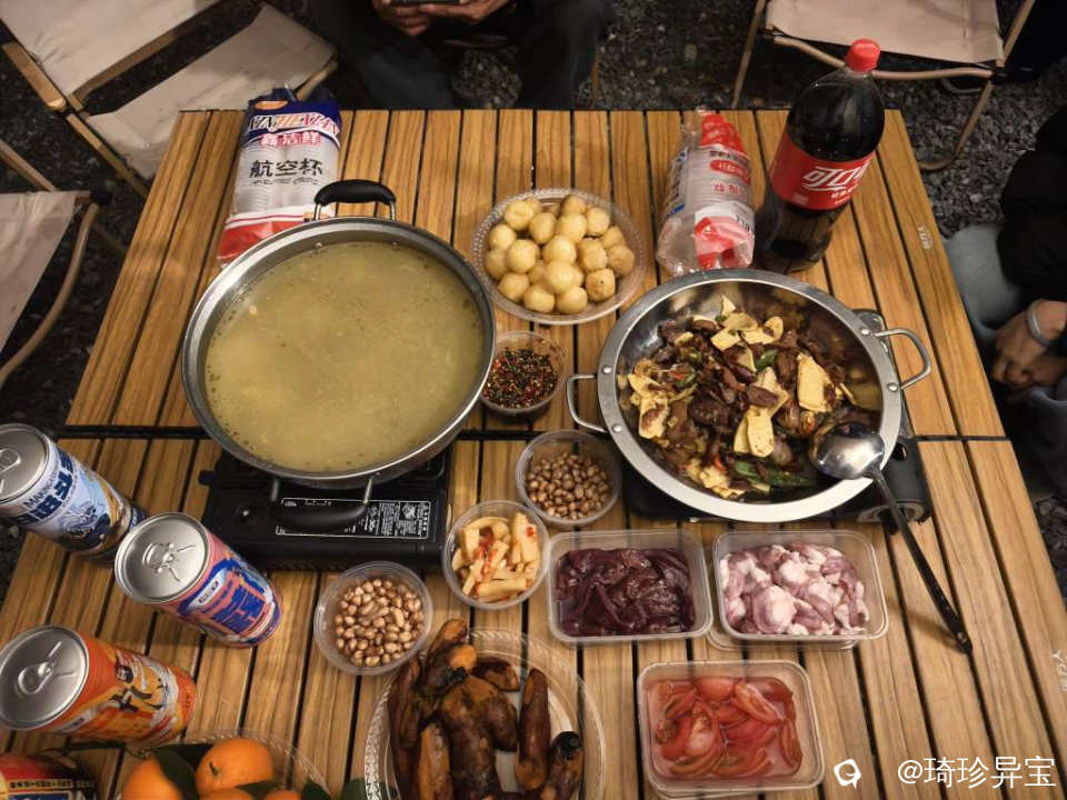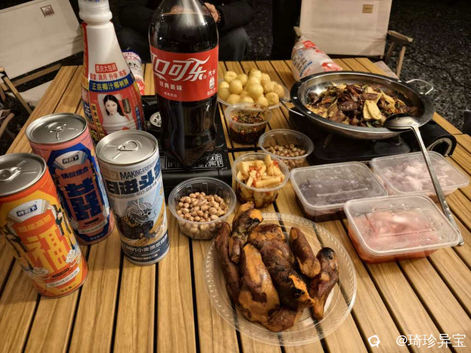 这次的聚餐选择在了郊外的某处露营地,所有食材皆由石头私厨准备,当然也有朋友自发的带来了美食与大家分享。梦起点蛋糕一如既往的贴心,准备了一个漂亮的大蛋糕。