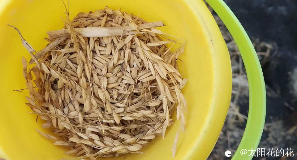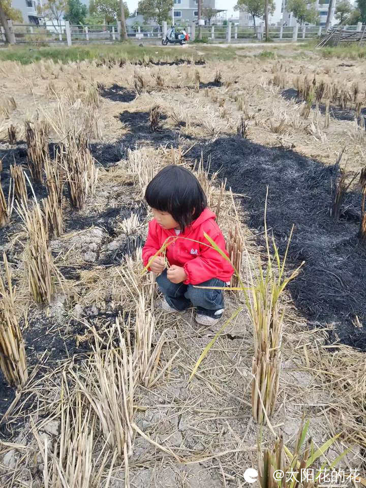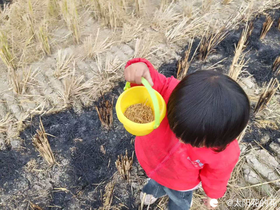 地里掉了好多稻谷,捡点回去做小盆栽……