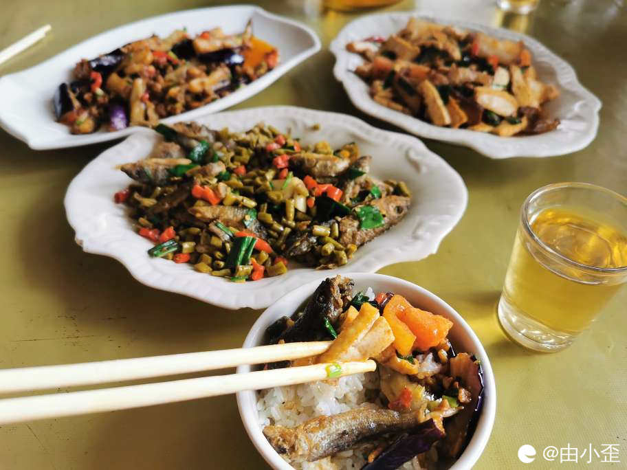 我和小伙伴们出去办点事,中午路过阳朔白沙,每人A了20块,点了三个快餐,猜一猜我们去了哪家大排档?
