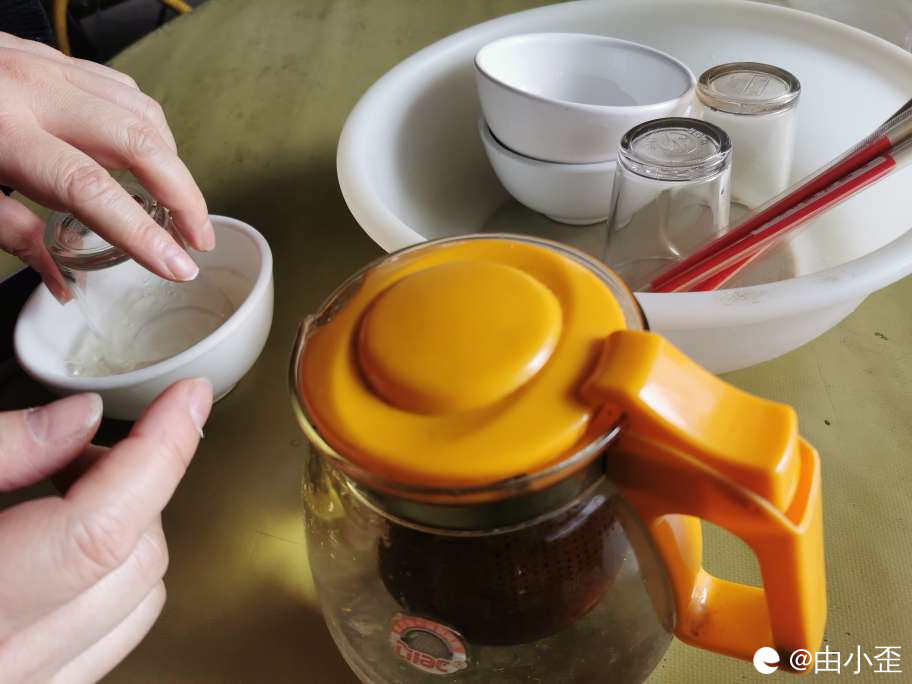 用开水烫了个碗,静等肥仔开锅。