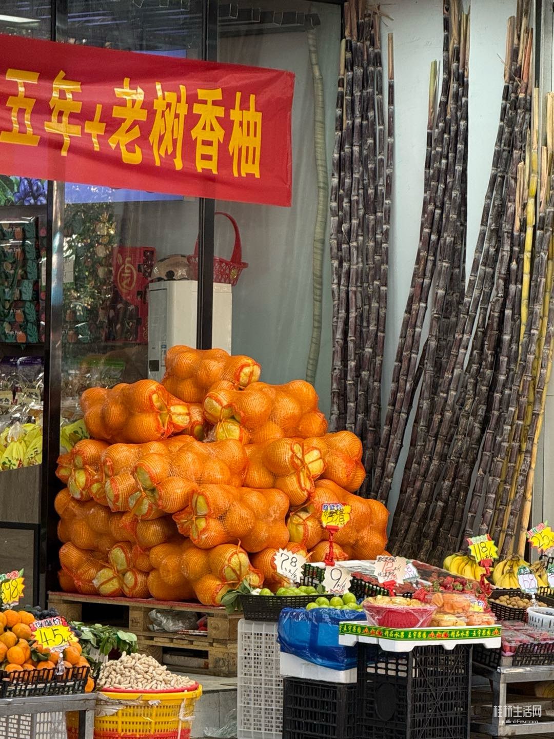 还是柚子,水果店又拉横幅又堆在显眼的位置