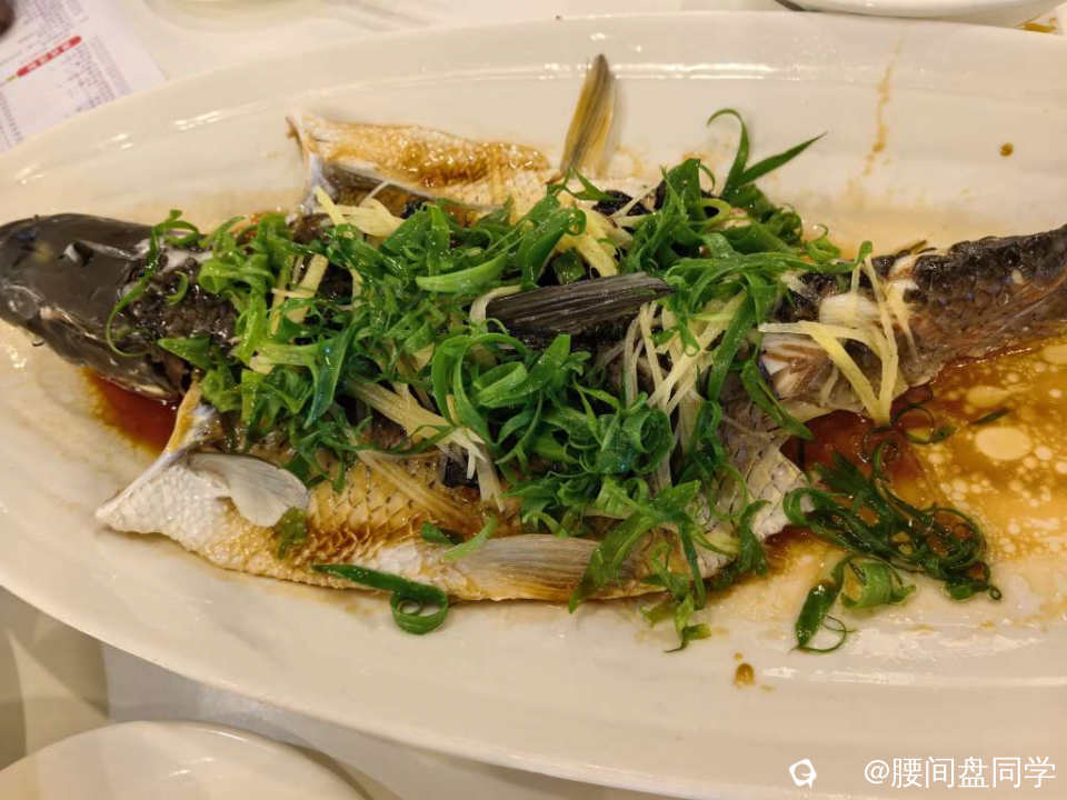 姜葱蒸鱼,非常清淡,适合正在减脂中的涂涂,所以她点了这一道鱼,差不多整盘都被她吃光光辣~