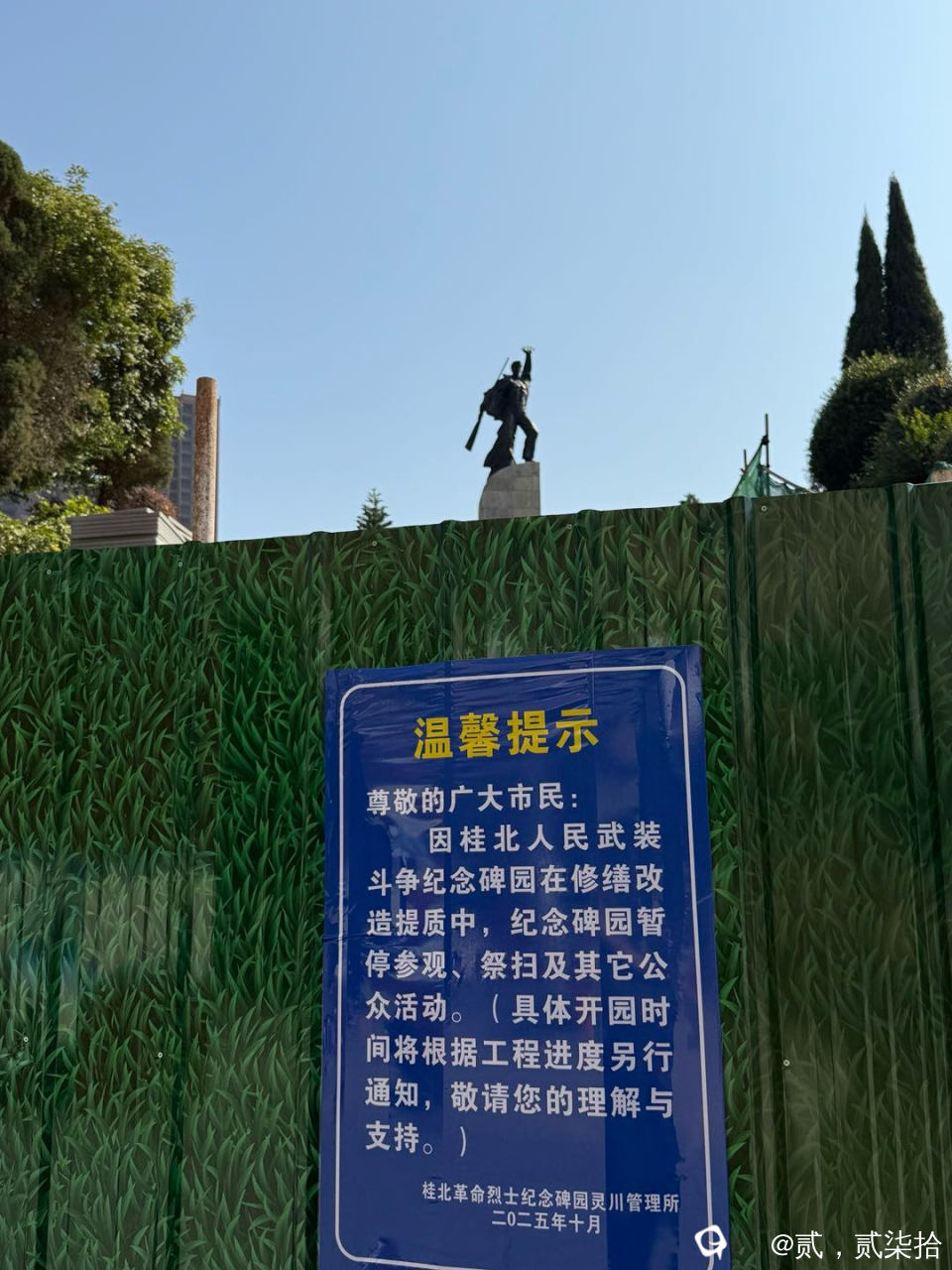 来灵川参观桂北人民武装斗争纪念碑园,出门没看黄历,去的日子没选对,纪念碑在修缮之中,看进度,可能要到八月份才修好