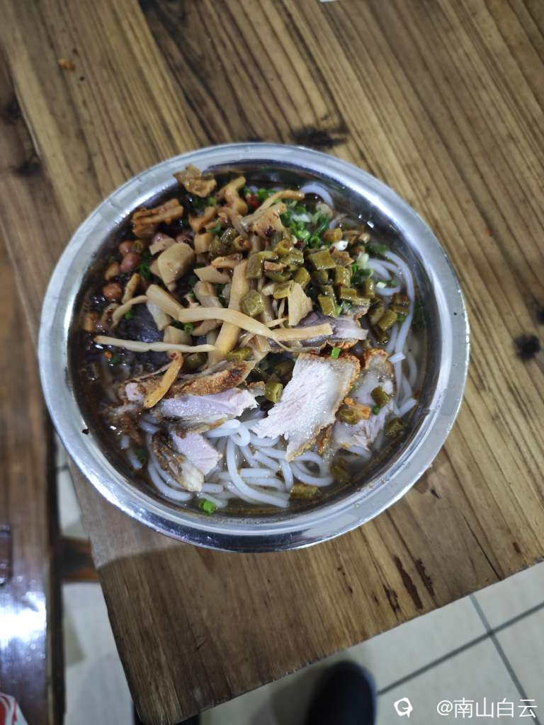 今天早上,在一家金字塔顶端的米粉店吃了三两,6.5元。量大肉多。