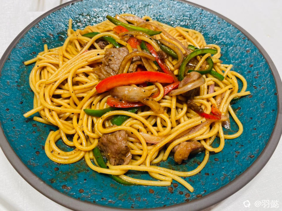 黑椒牛肉炒意粉俘获了娃的欢心。