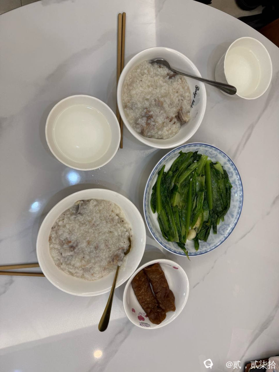 [本地杂谈] 青菜配白粥,简简单单的早餐
