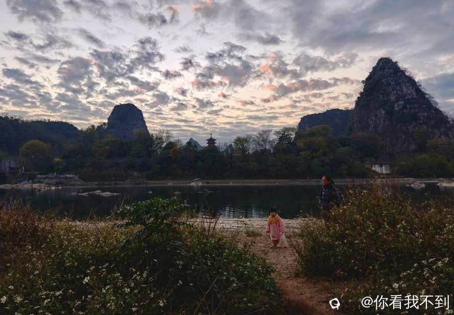 前段时间的晚霞,虽然不算红但冬天能有片状云晚霞实属难得,于是来到漓江边步道走走拍拍。