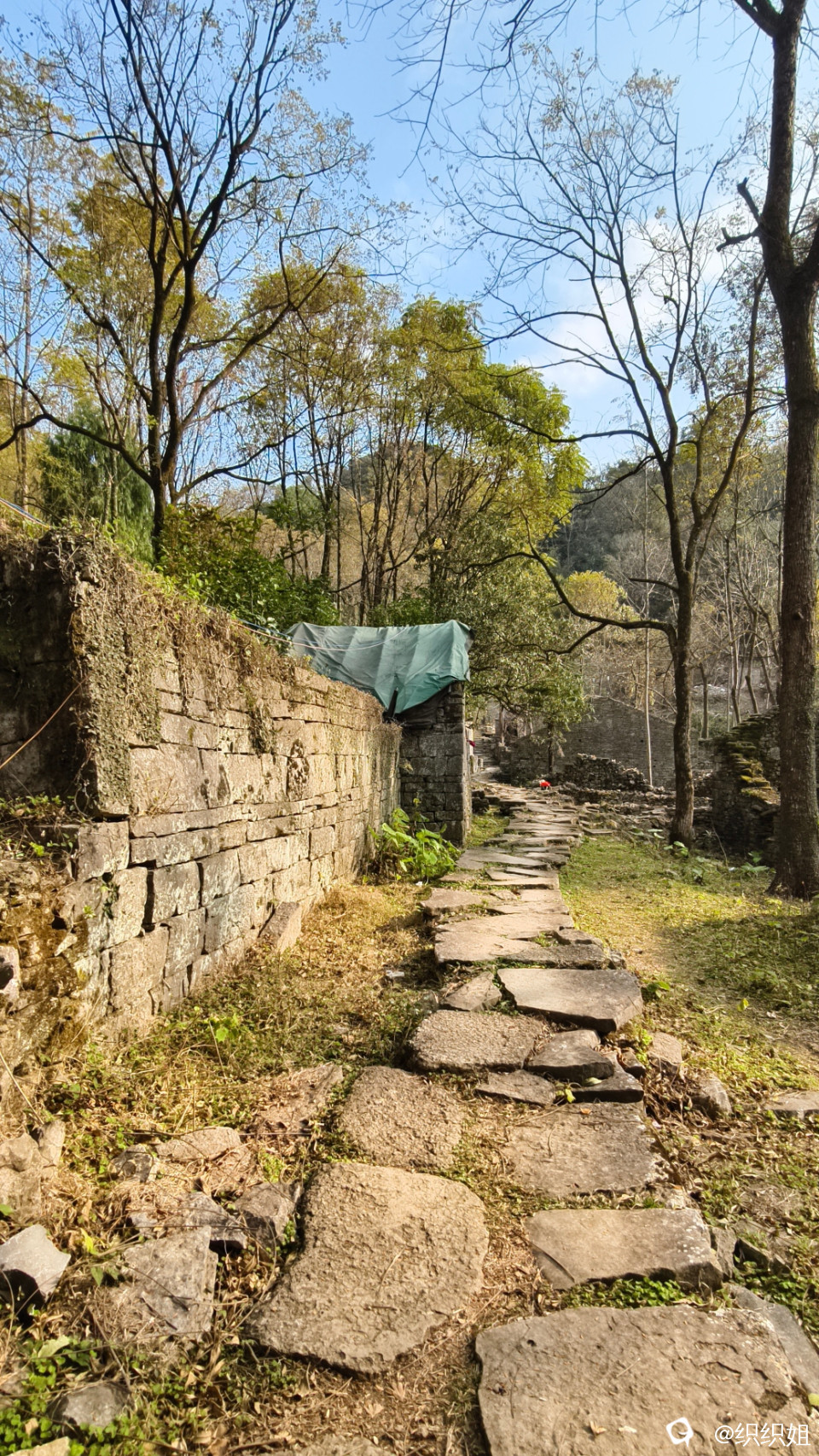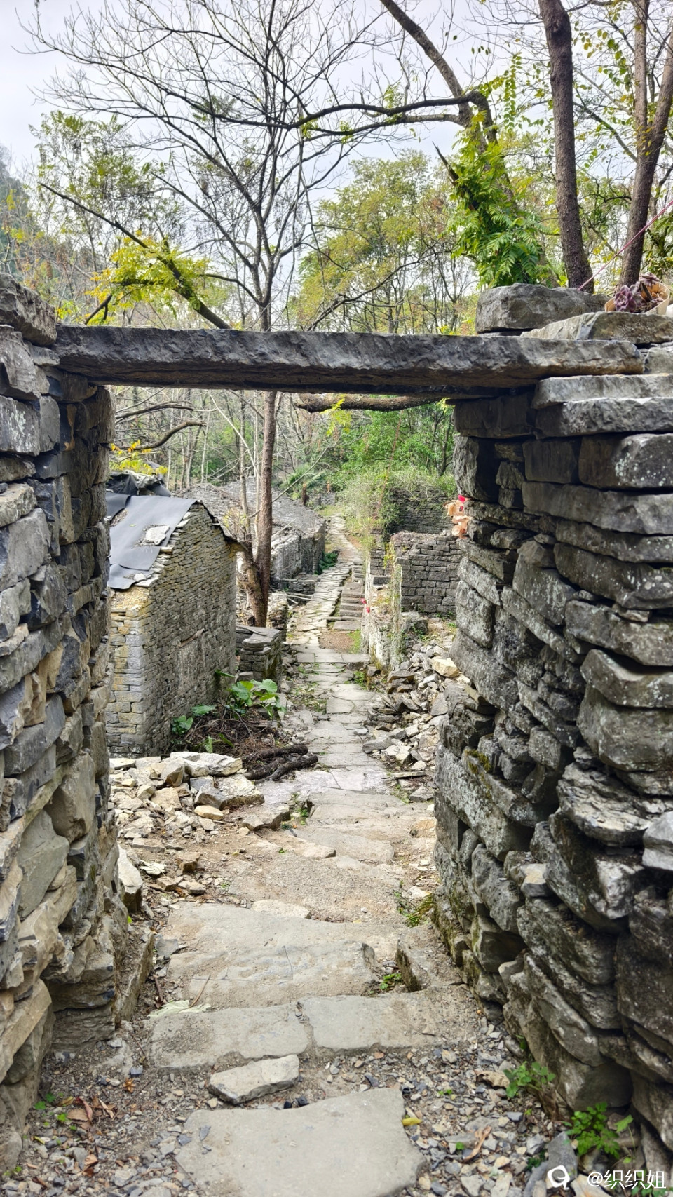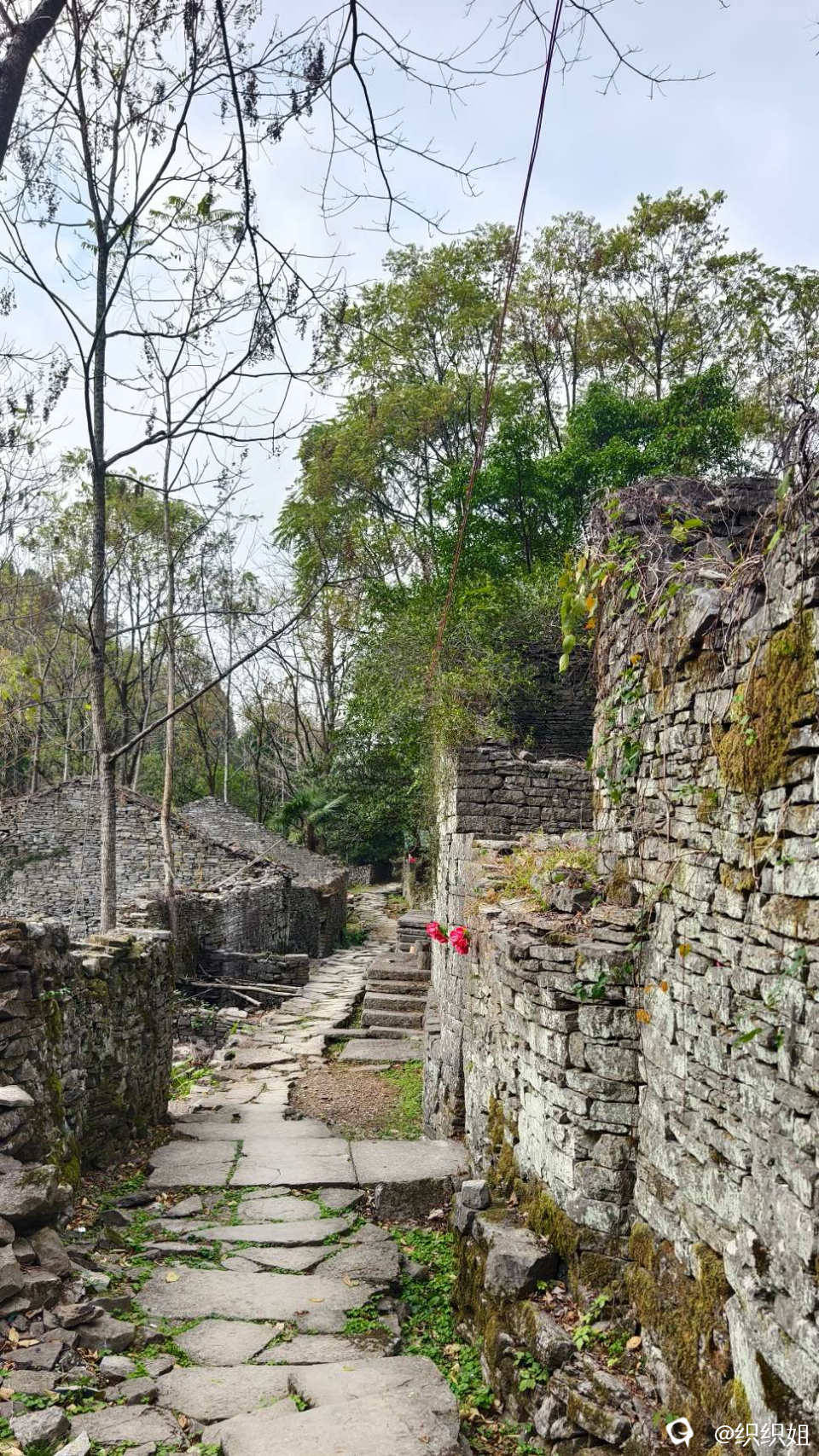 逛完,继续沿小路上山。古石头城到了。 路,石头铺的;