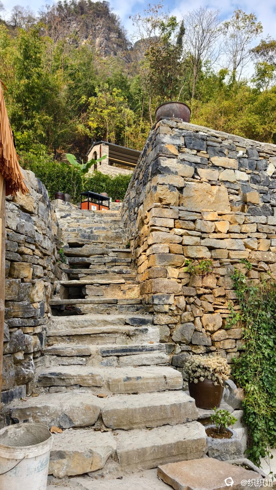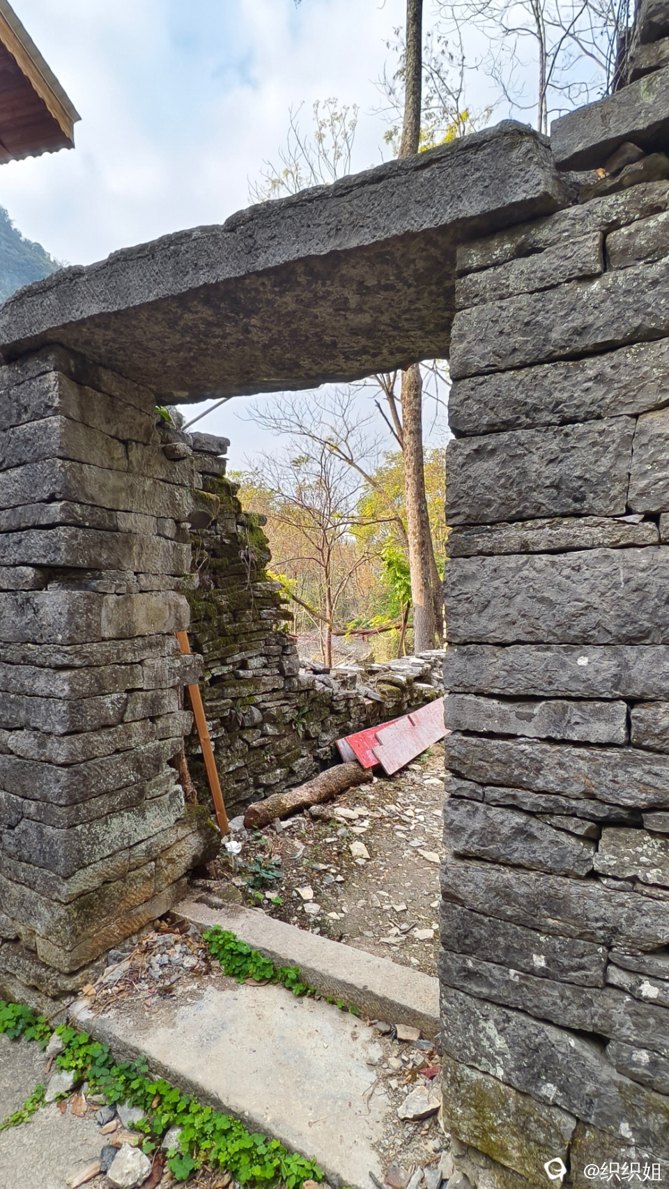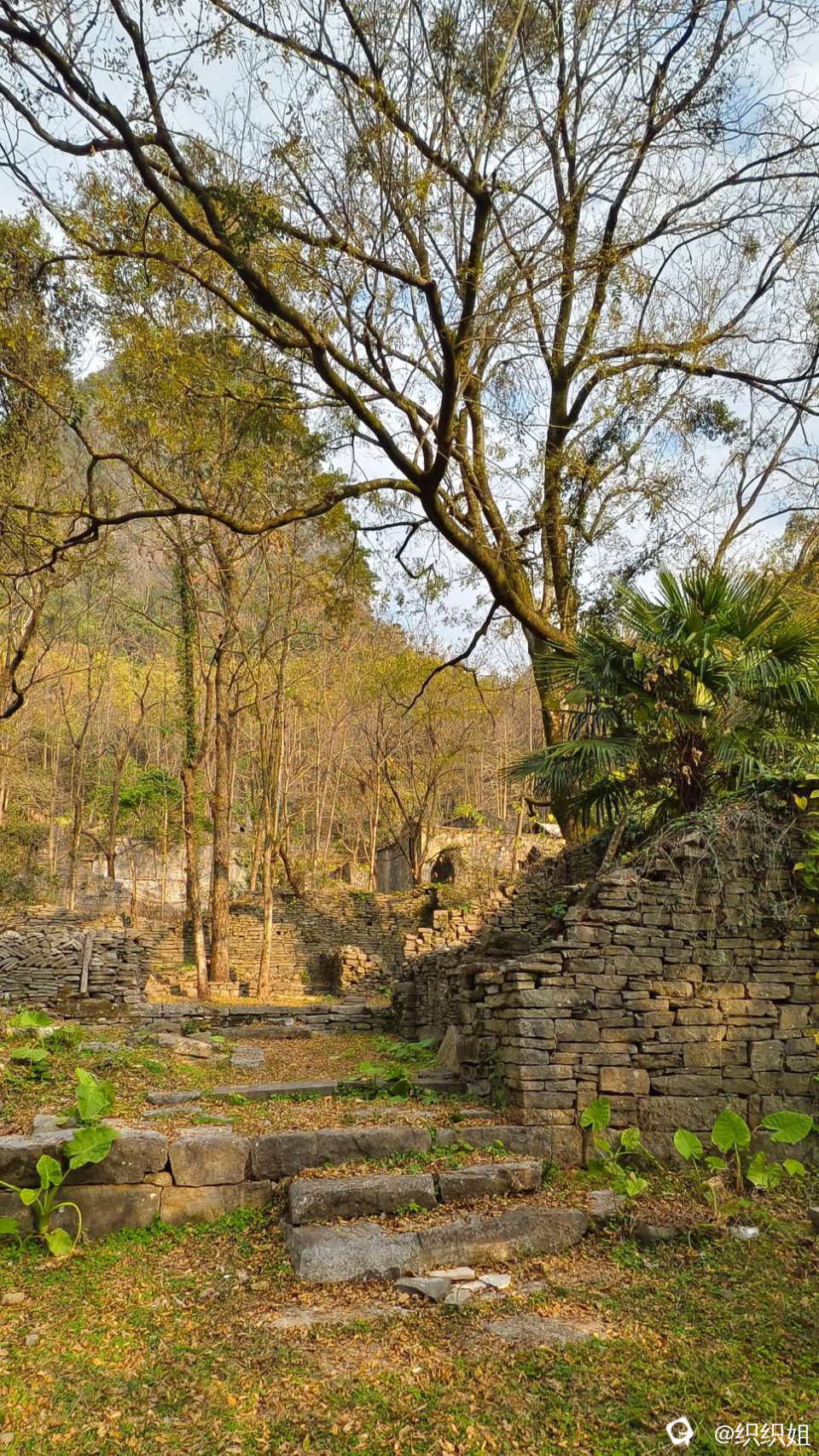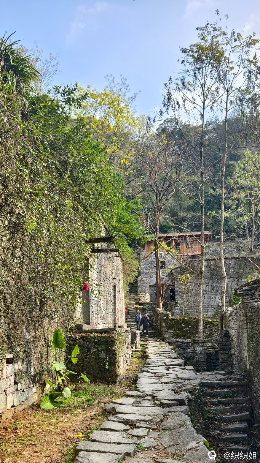 逛完,继续沿小路上山。古石头城到了。 路,石头铺的;