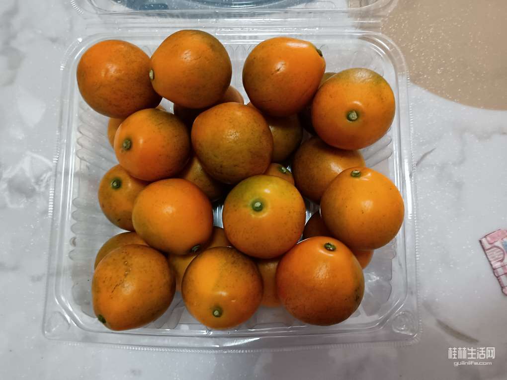 明天咱要去深圳一趟,想带点桂林水果。水果摊主向我推荐了融安金桔,还拿了一颗给我尝。说实在,这金桔确实蛮好吃,新鲜,皮脆,汁多且甜。20元一斤哦。于是,咱称了几斤,差点花了我一张毛爷爷,不由心痛两分钟。