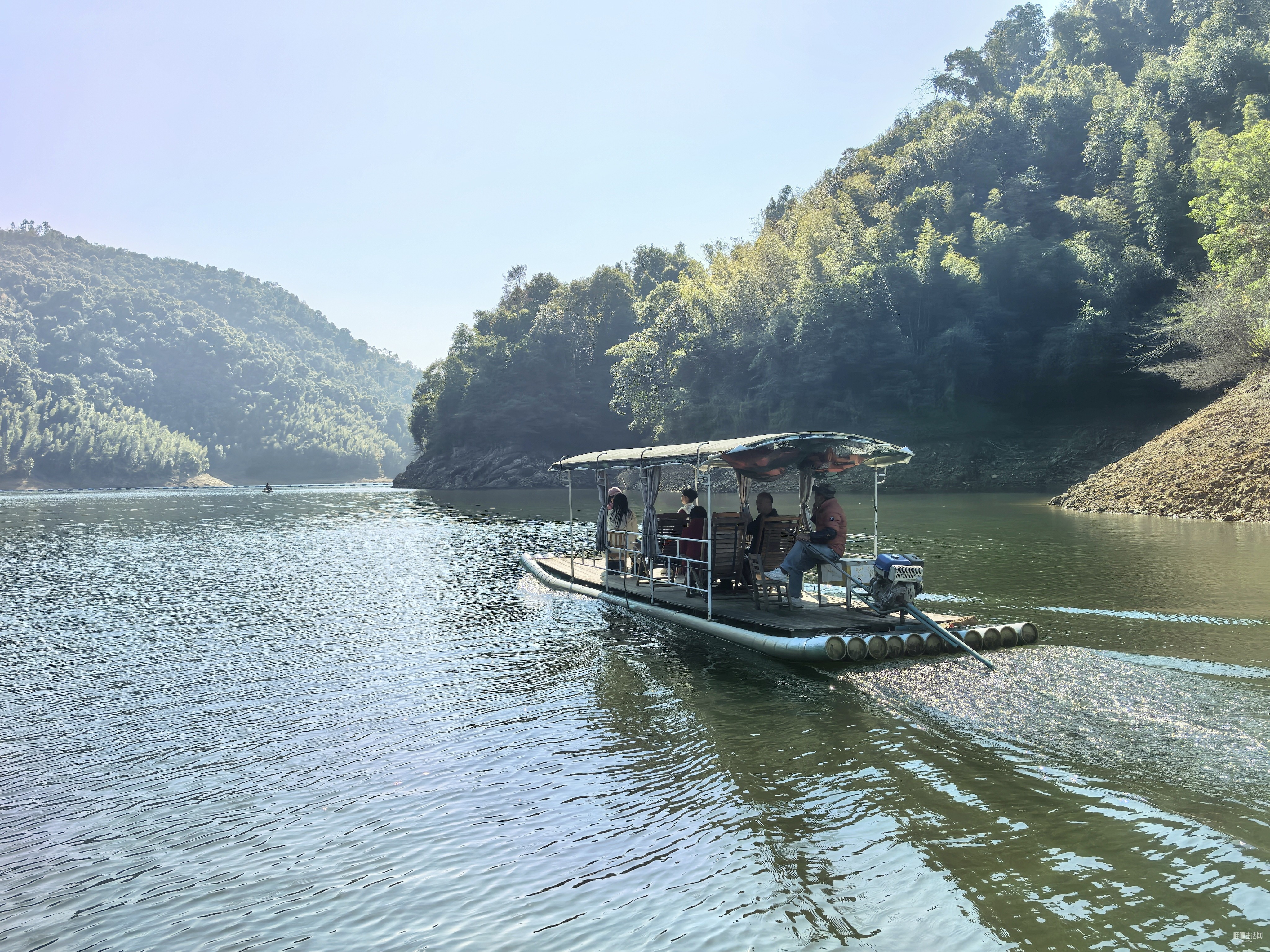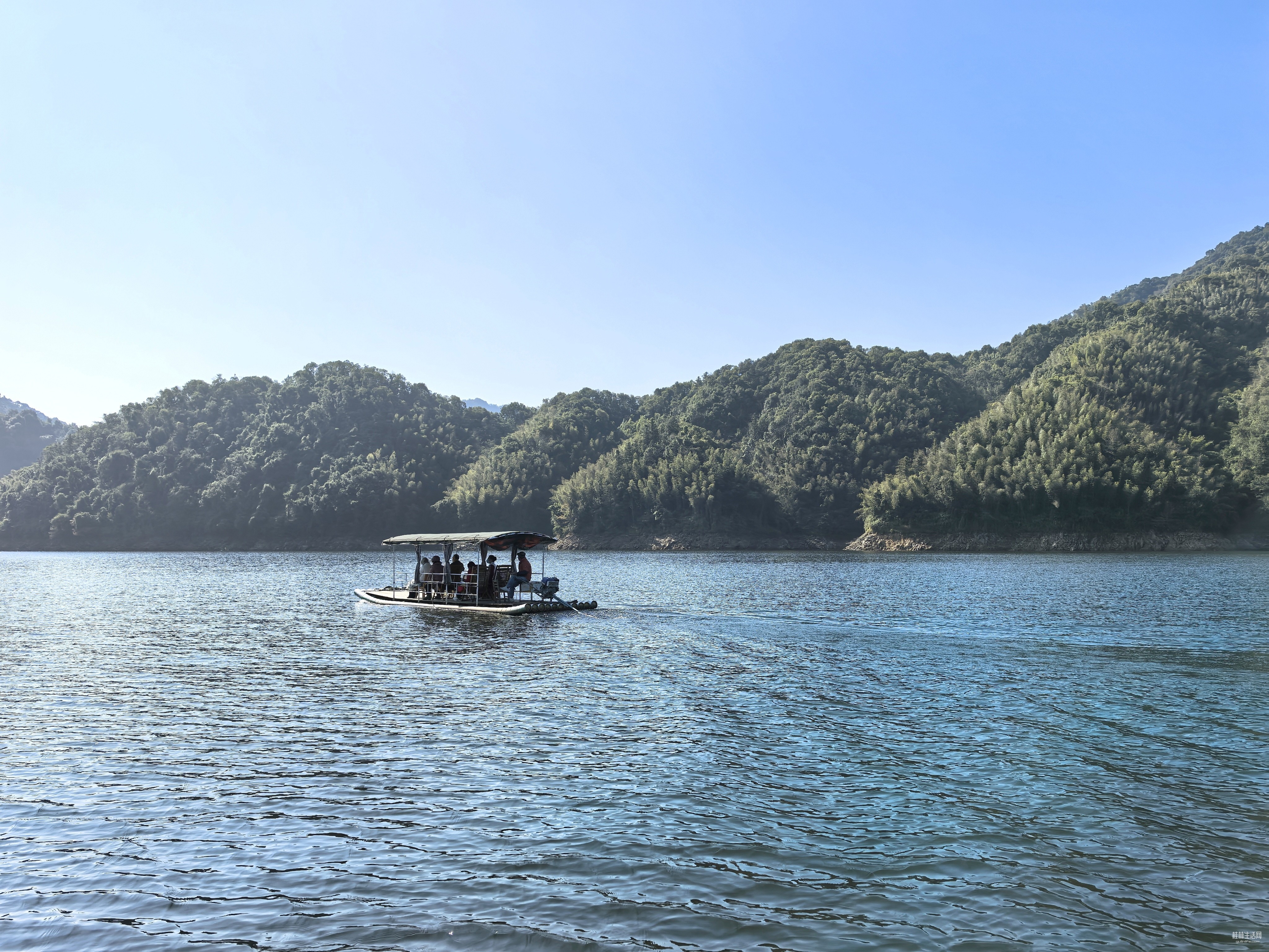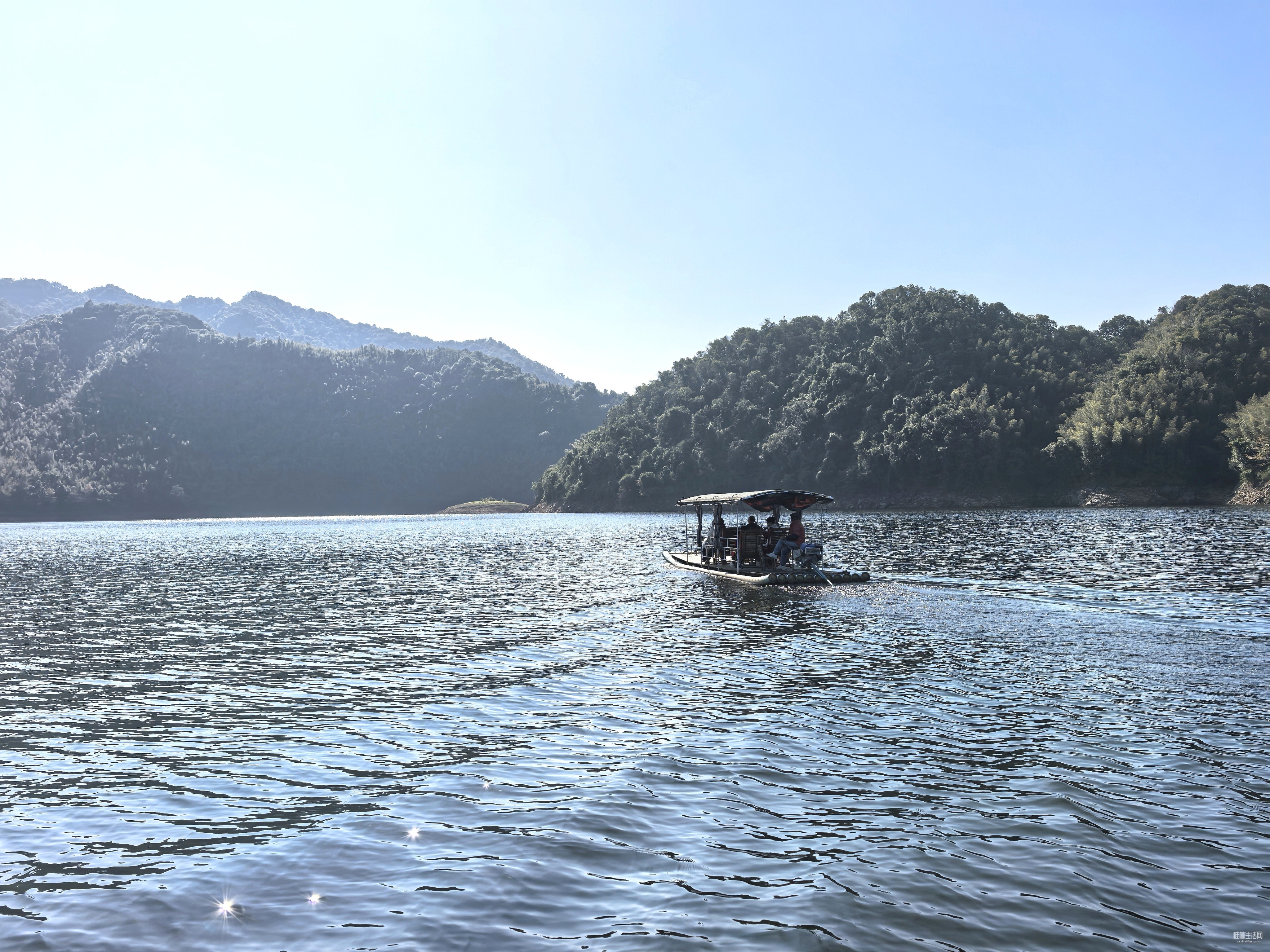 舟行青狮潭,人在画中游。游船在湖心中缓缓行驶,轰隆隆的马达声载着船体掠过湖面,泛起层层涟漪。