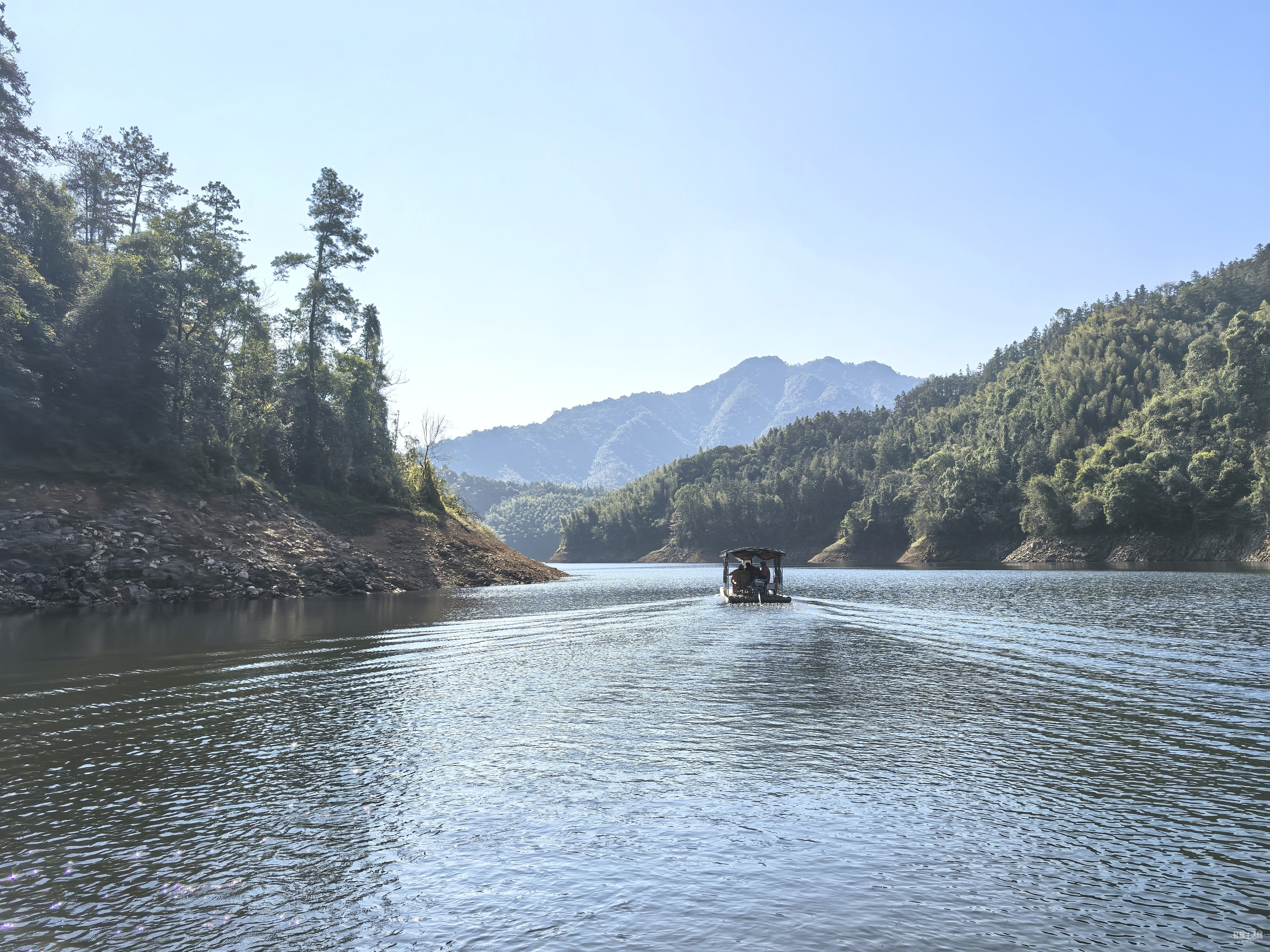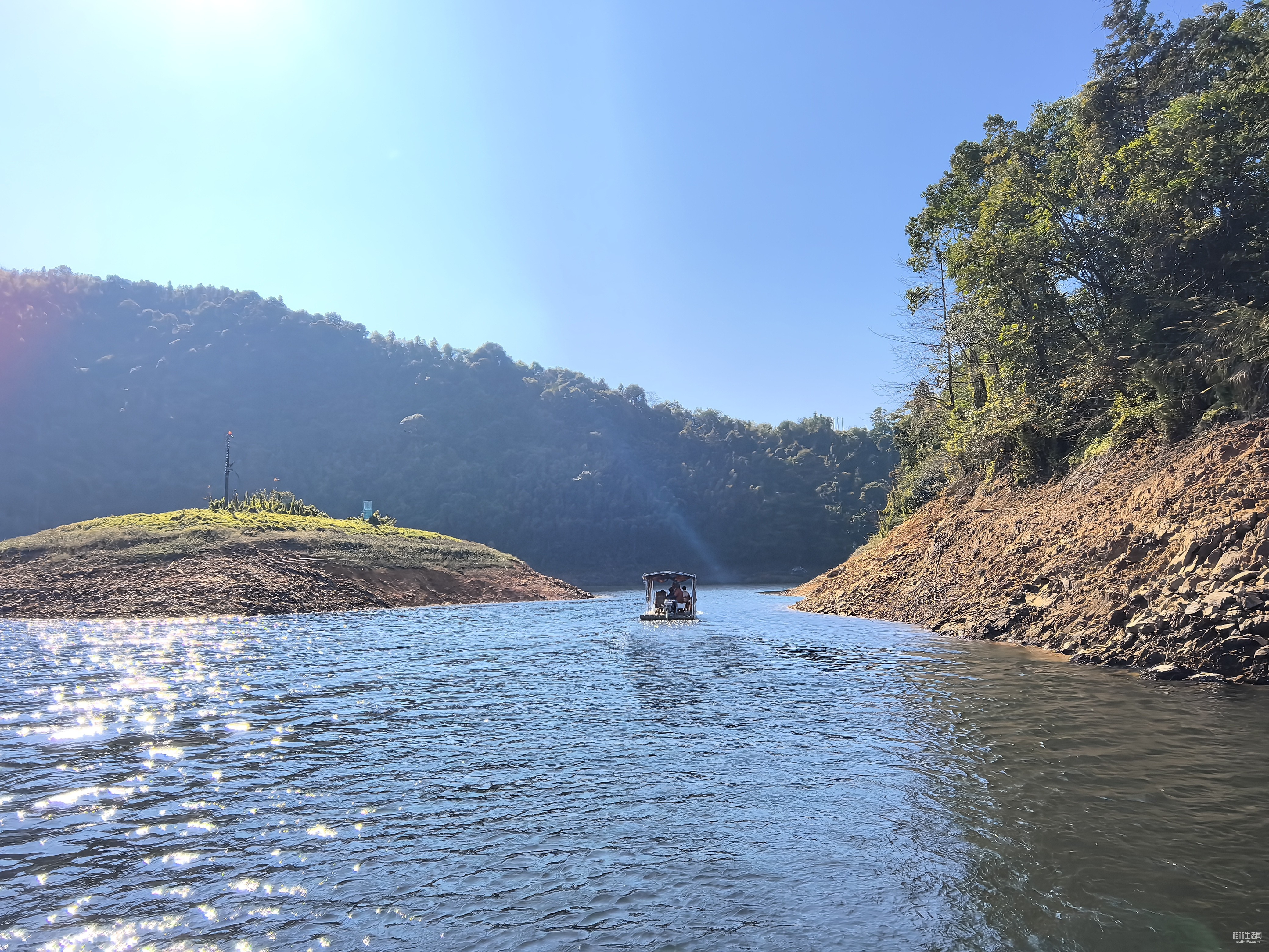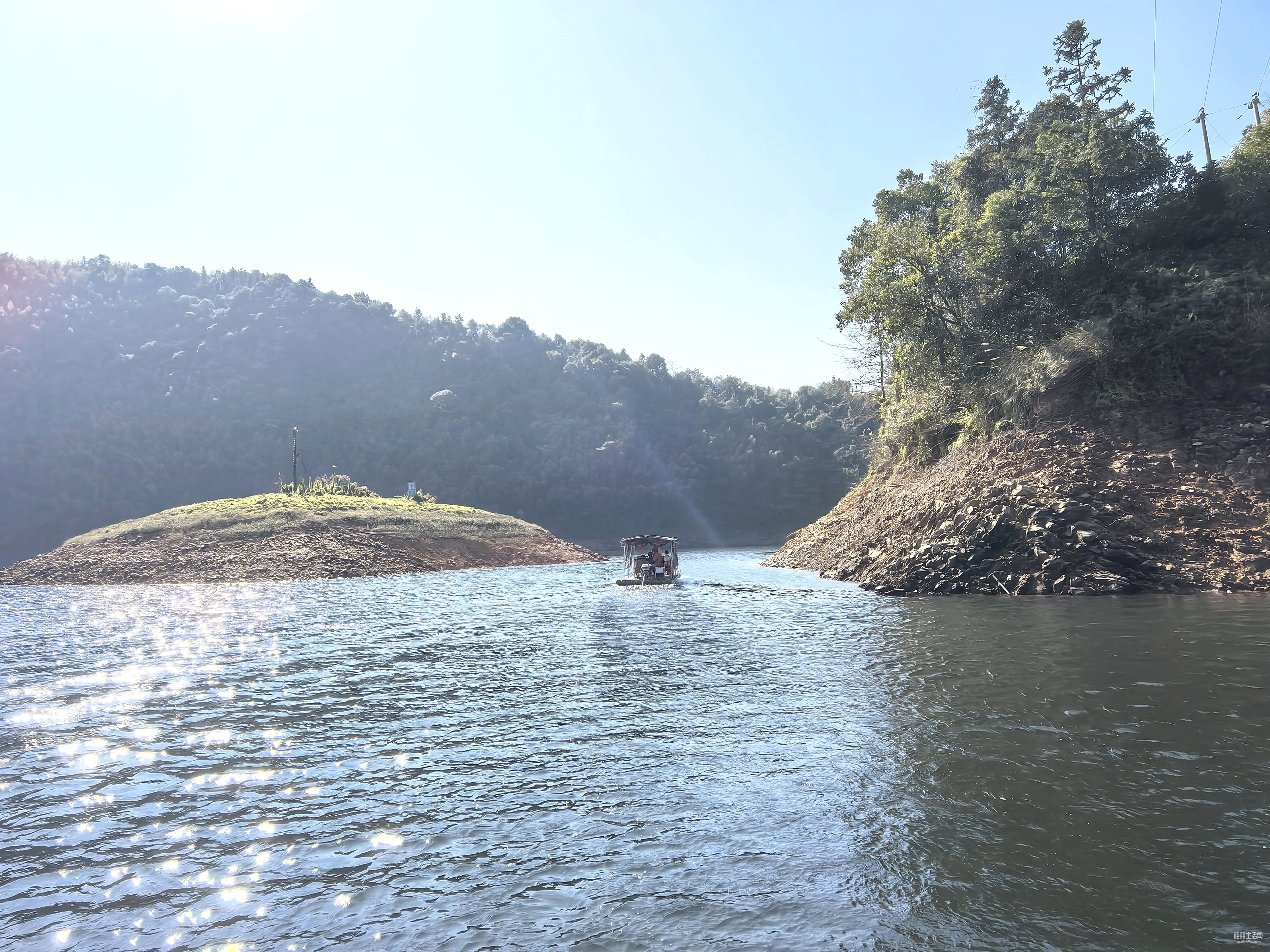 冬日的库区少了喧嚣,多了清寂;船驶入湖中,烟波浩渺的湖面一望无际,宛如桂林藏在山水间的“海”。据开船的当地人说,重建后的水库防洪标准已提升至了百年一遇。不由得想起重建期间,水库水位下降时露出的古村落遗迹,那些房屋地基与田垄痕迹,承载着库区移民的故土乡愁,如今又重回水下,被这汪清水温柔守护 。