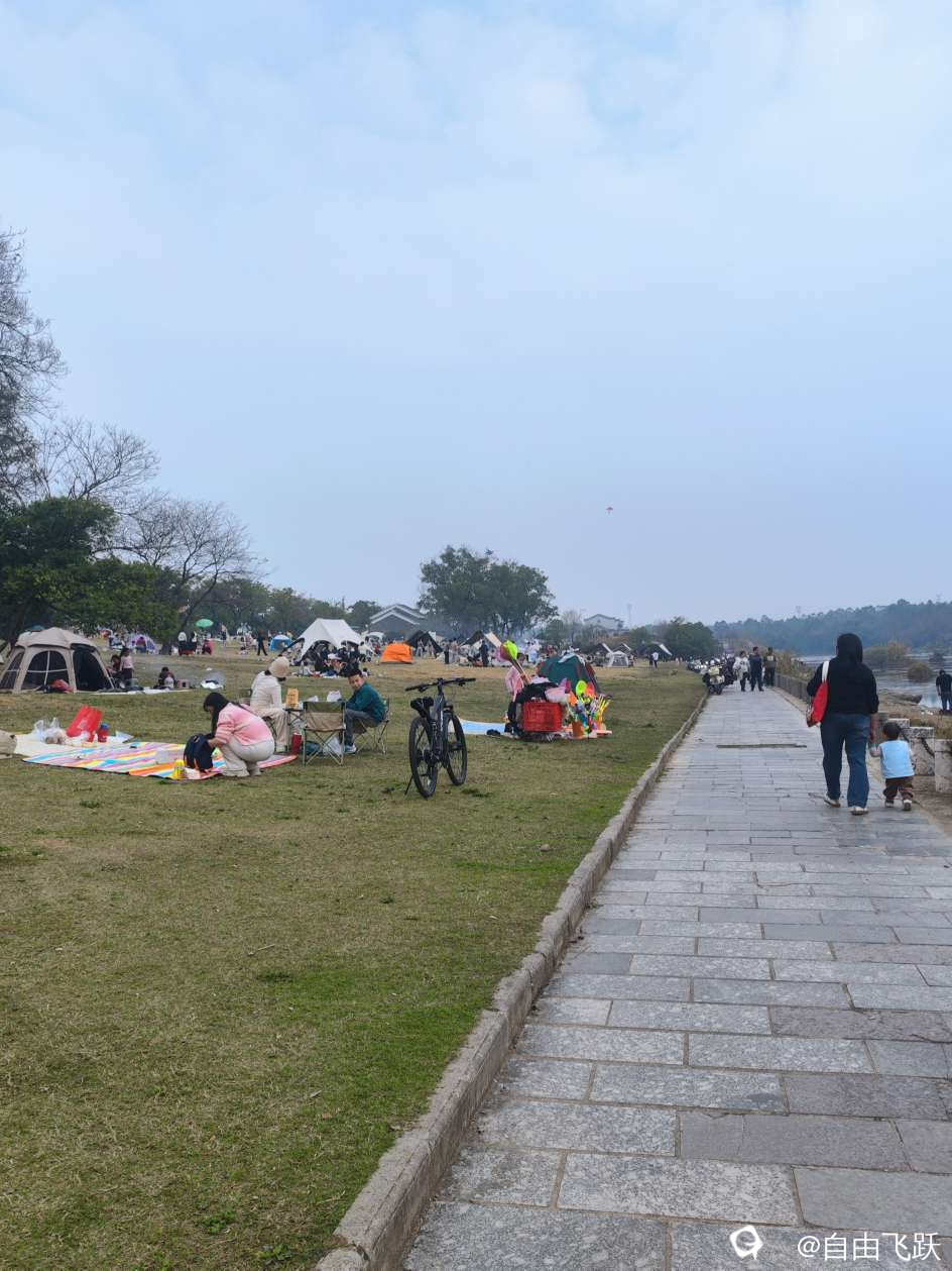 没有想到的是,步道越往前越闹热,烧烤、帐篷、风筝、钓鱼、骑车,人人在玩,个个会耍,感叹灵川人的星期天确实好休闲。