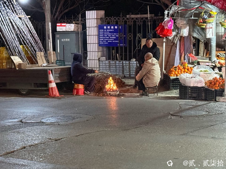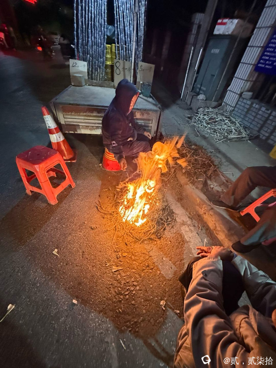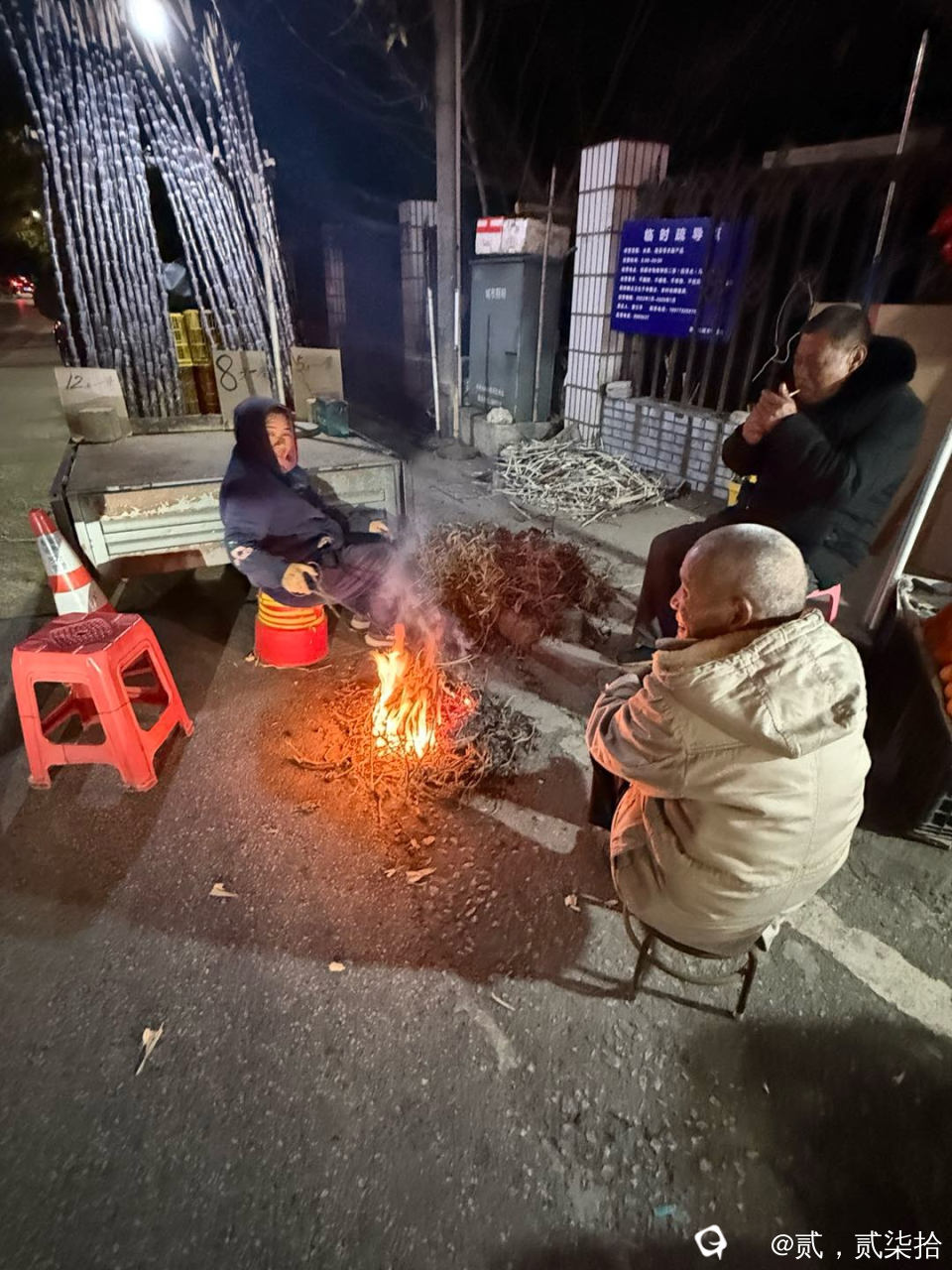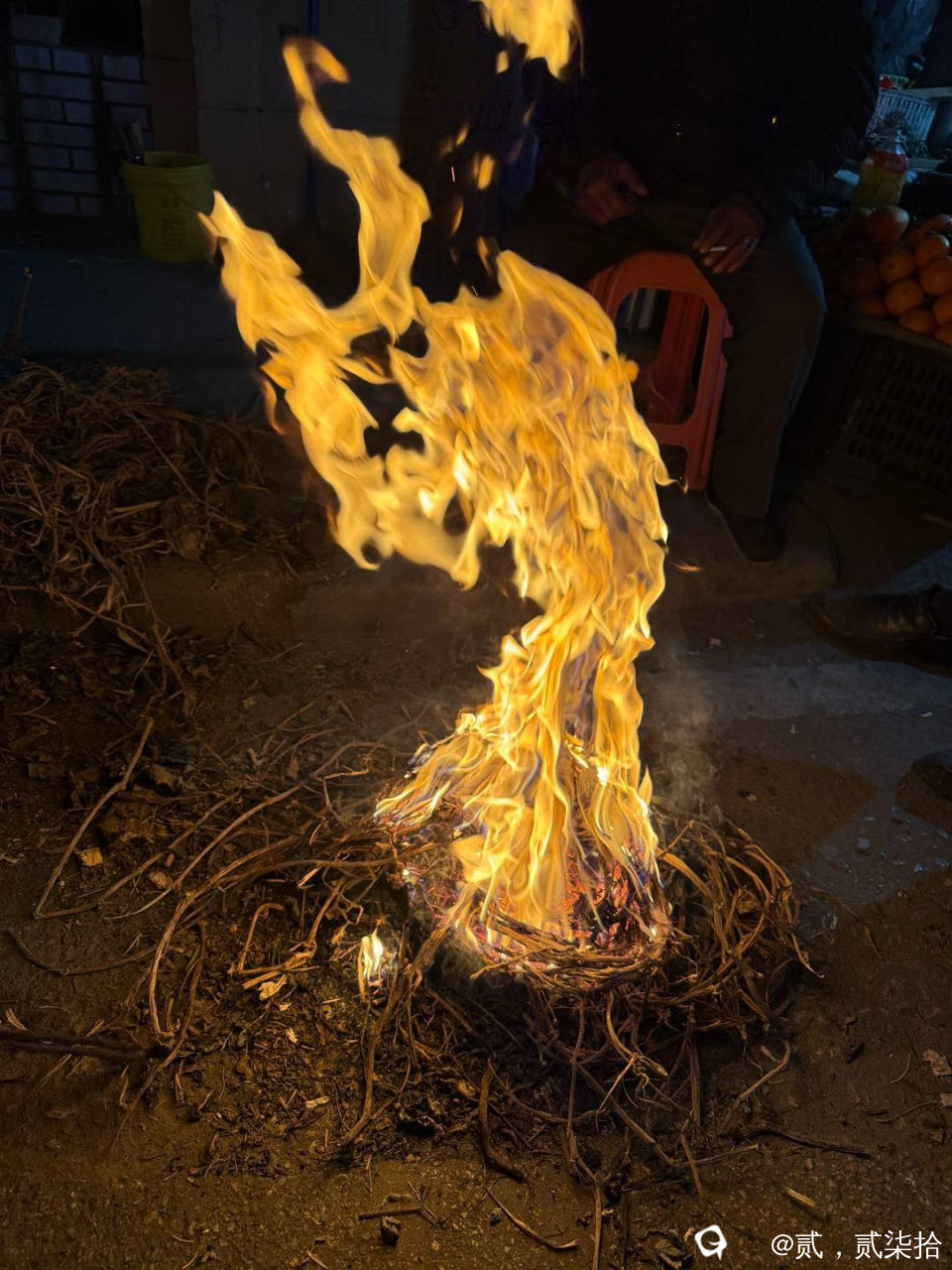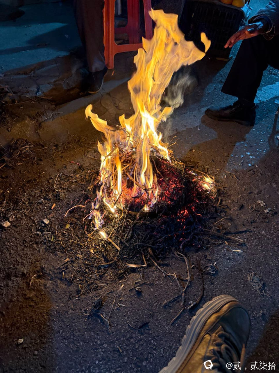 烧的甘蔗皮吧,天冷了还要在外面摆摊,不容易