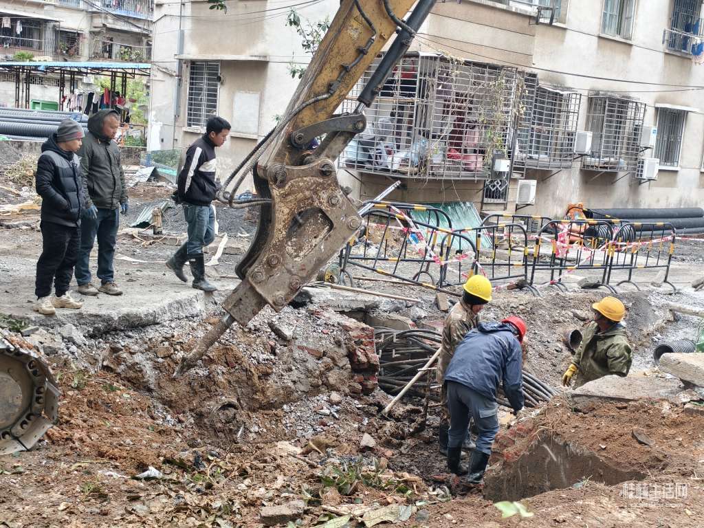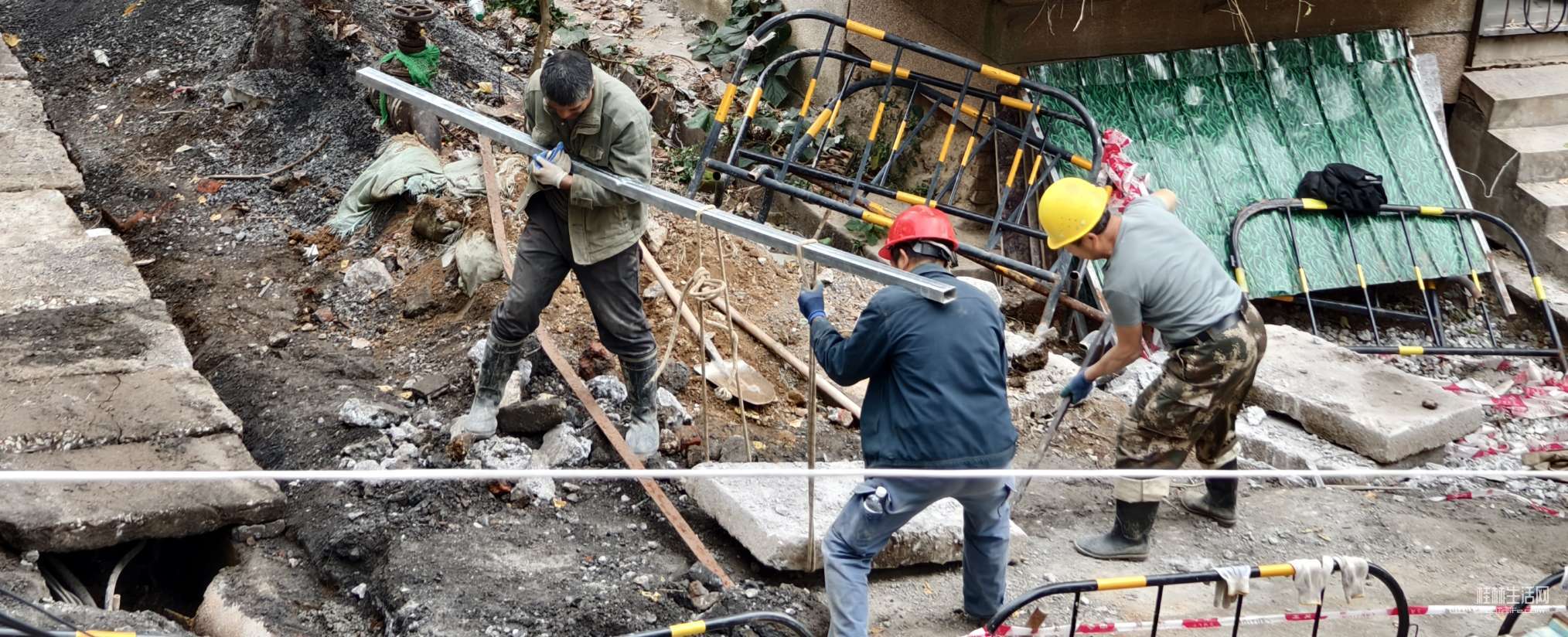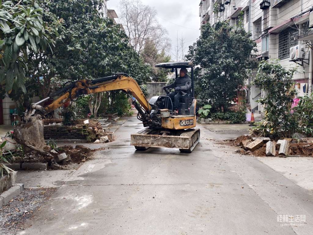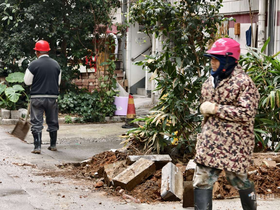 大寒节气,桂林下着小冻雨。老旧小区改造工地。