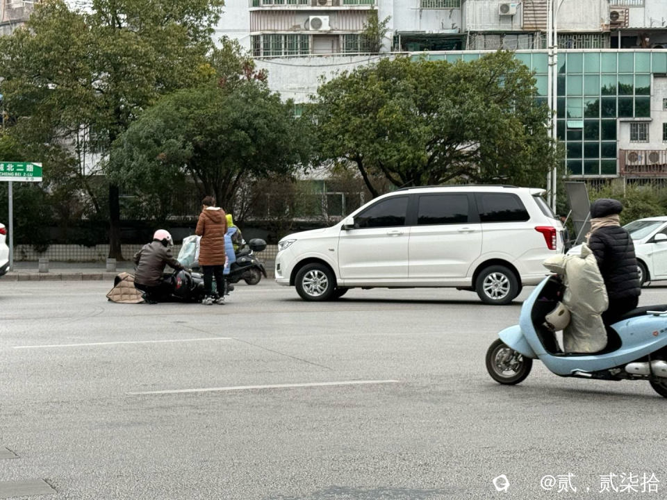 9点30分左右。开车路过看见的!汽车和电动车的对决!具体原因,谁对谁错。给相关部门去判定!冬天冷大家出行注意安全小心慢行