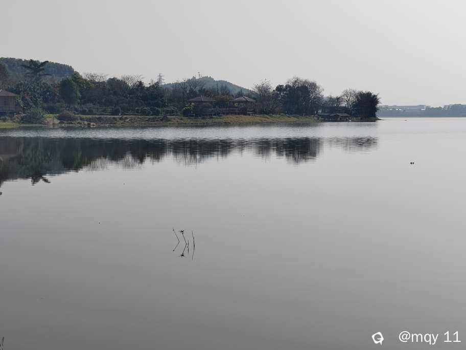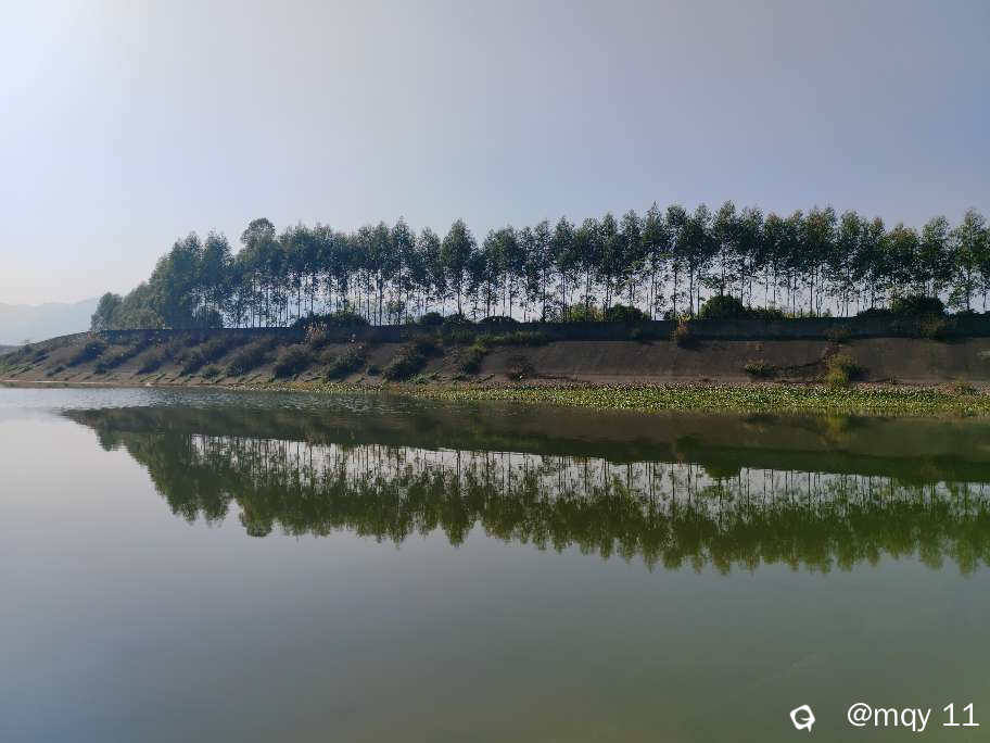 嘻戏的水鸭子,遇人盘飞的白鹭,静奢平整的湖面,两岸果树朵朵,按树排排,山水树的倒影也成为湖景的具象化。