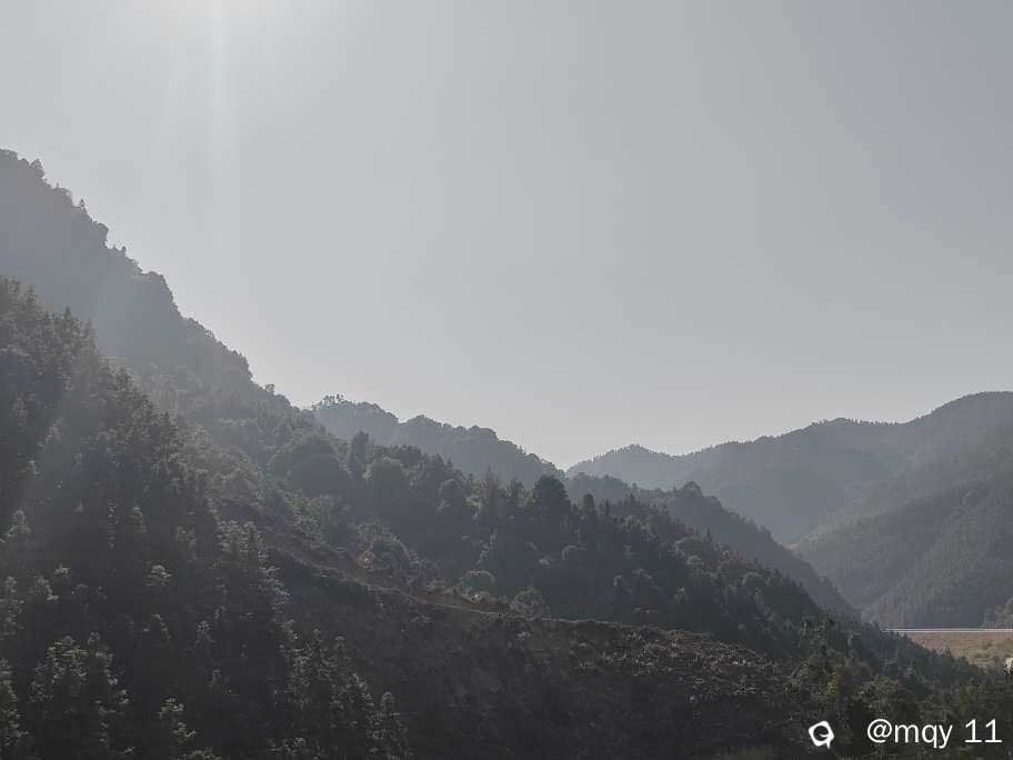 顺着婉延曲折的盘山道路,你能体会更多的是绿意盎然,丛林密布,山峦连绵,山坳经常有达尔文光从顶峰射下来,大自然的呼吸之气,形成一层朦胧的光影,空气也变得清新了许多,也使得我前行的步伐,断断续续。