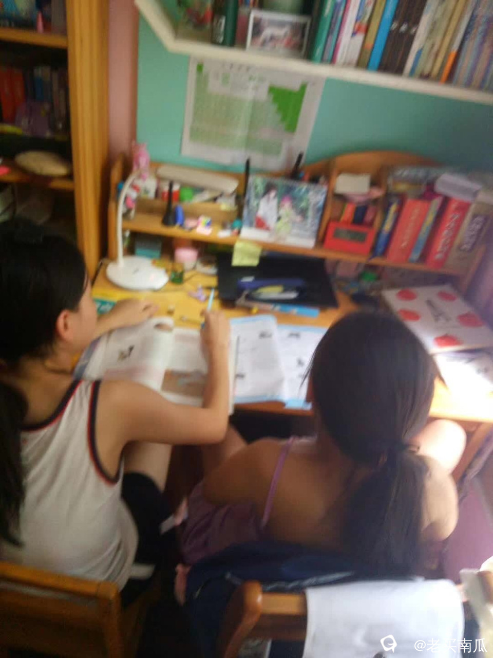 现在大的在辅导小的作业。看着两个孩子成长的足迹,不禁感慨万千:我们未老,孩子就已经长大!