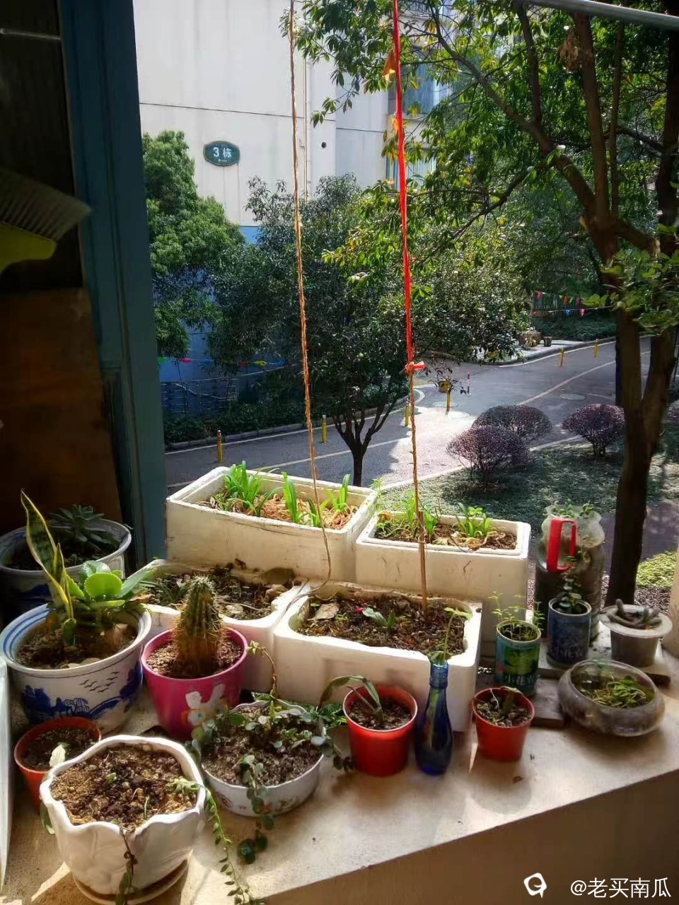 和孩子一起去要土'一起培植'你看阳台的韭菜长得多好'和孩子一起成长