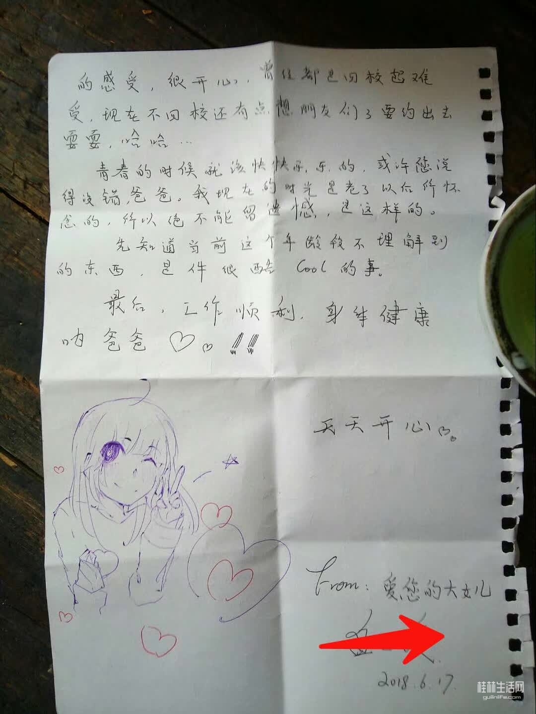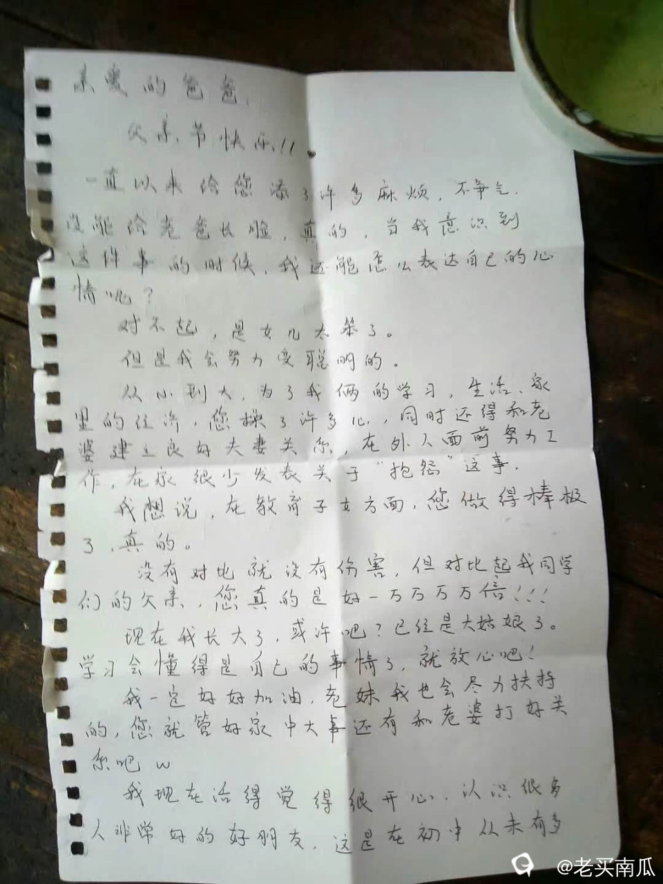 今天父亲节,大女儿写给我的信,很高兴,在自己未老的时候,孩子懂事了!祝天下的父亲们节日快乐!
