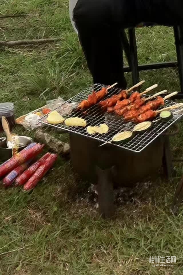 周末在临桂义江河边野炊'蛮爽'柴火铁锅饭菜'孩子们很欢