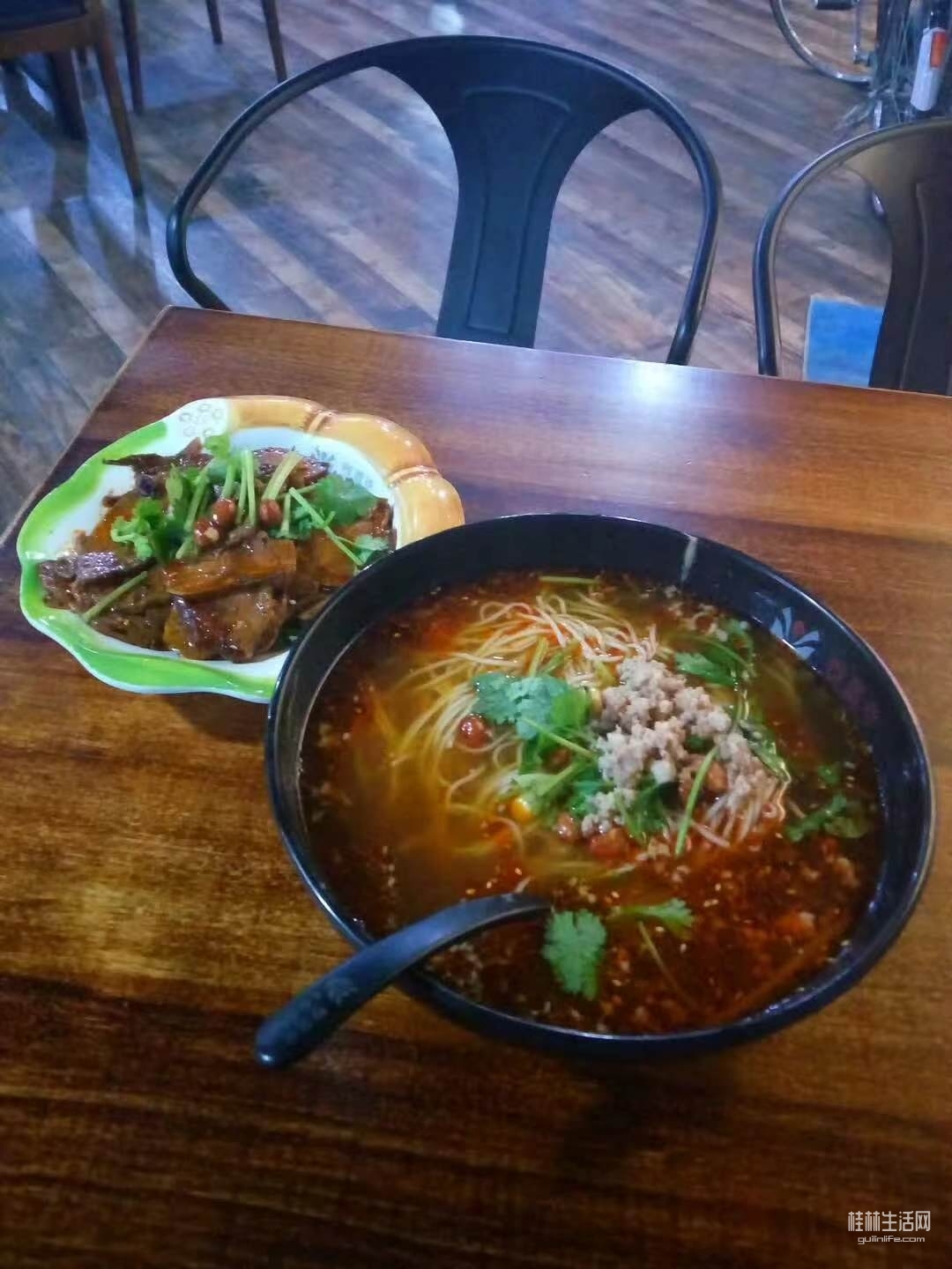 和孩子们来到临桂市民广场,准备看晚上8点的音乐喷泉,孩子们去吃汉堡了,我独自一人吃吃这熟悉的重庆小面