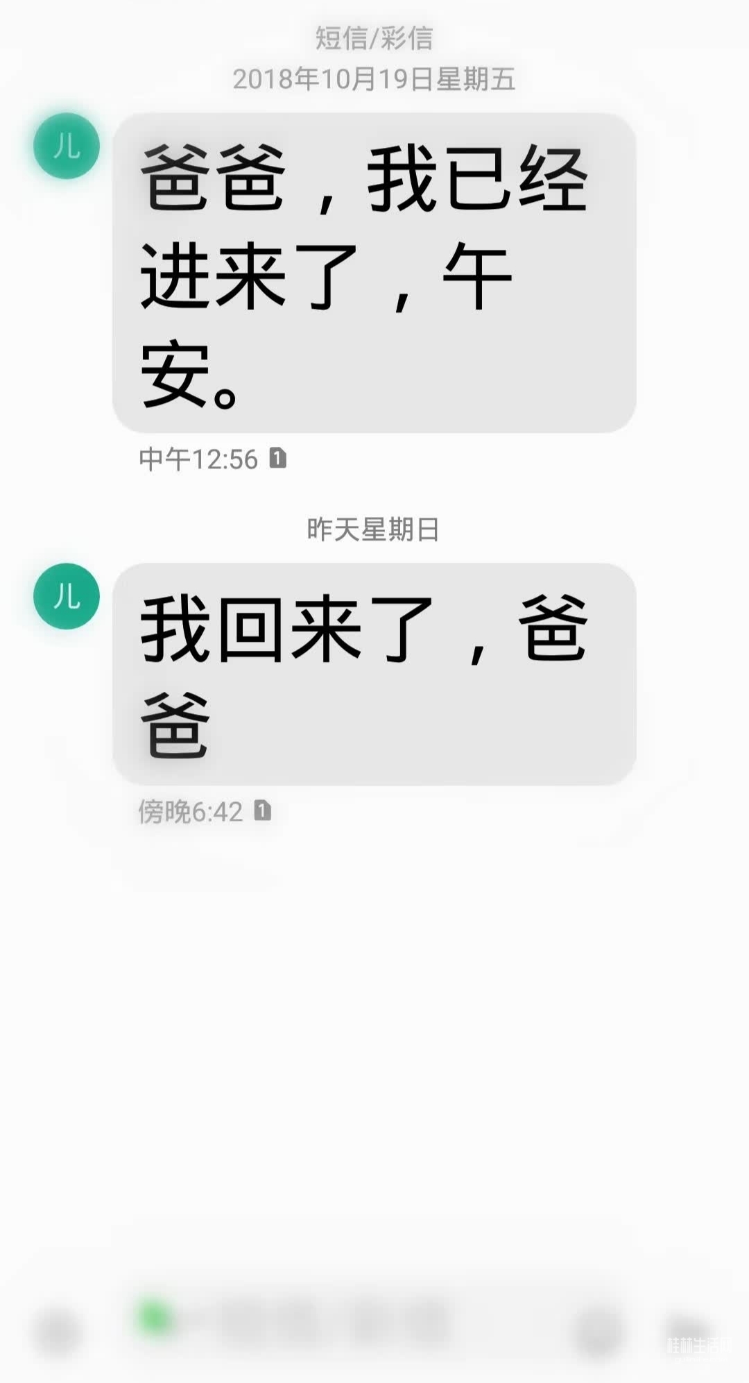 突然看到已经废弃做闹铃的苹果4里和孩子的短信对话,2015年的和昨天的,满满的孩子对我的关心,一股暖流泻过心田!