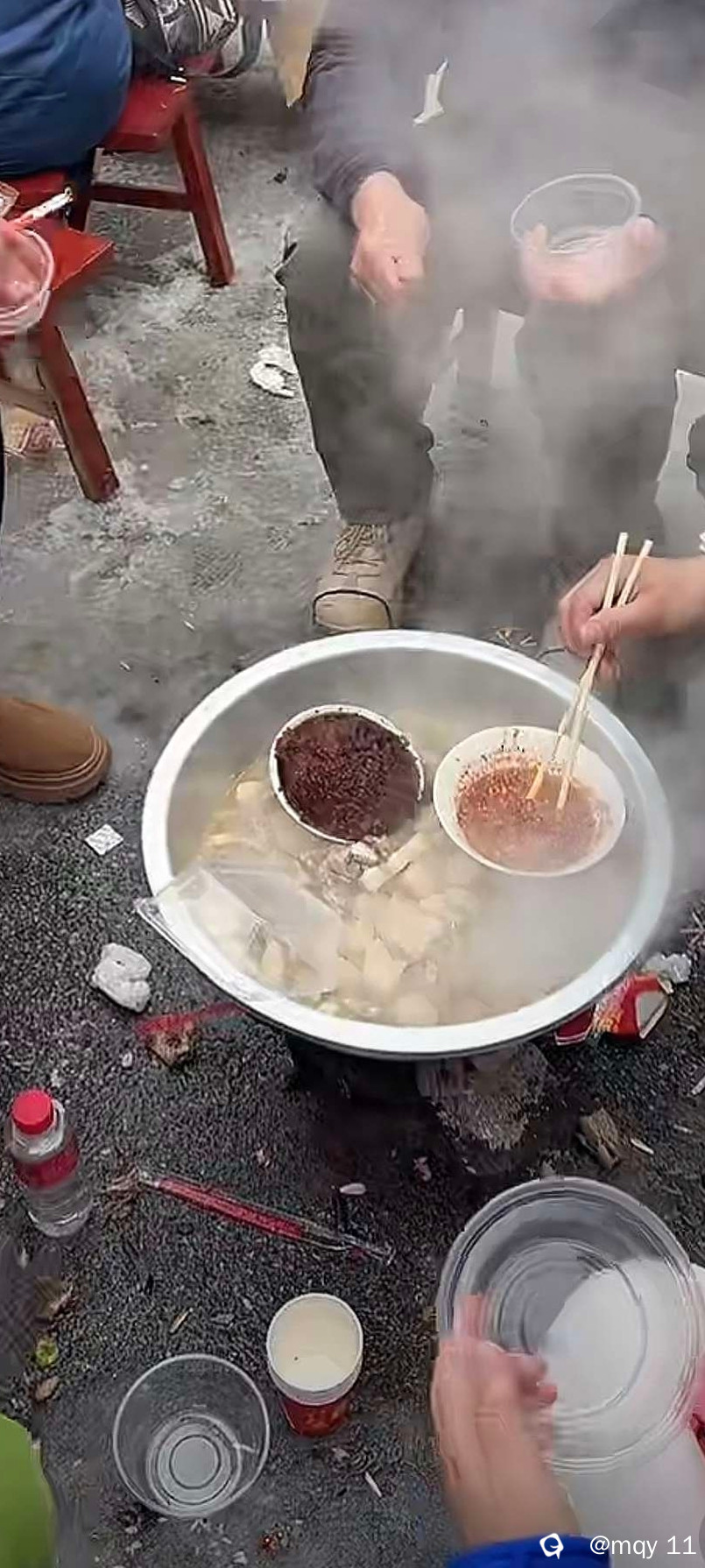 而在这份热情之下,资源也临时凑成了这一次千人刨汤宴流水席。