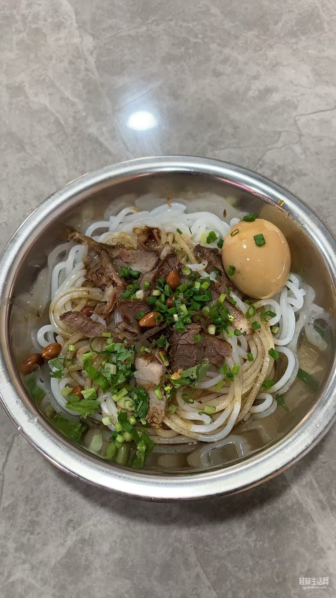 吃米粉只放一点点葱花,其他的配料都不加!不吃锅烧!不吃辣椒!不吃花生桂林米粉另类的吃法!