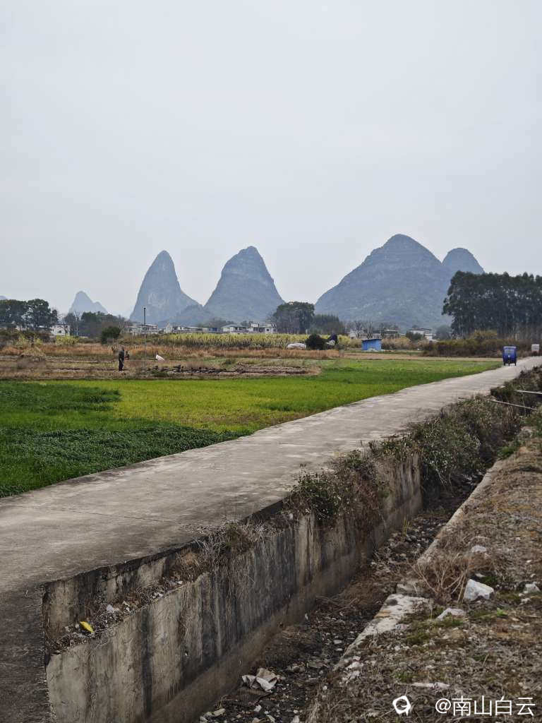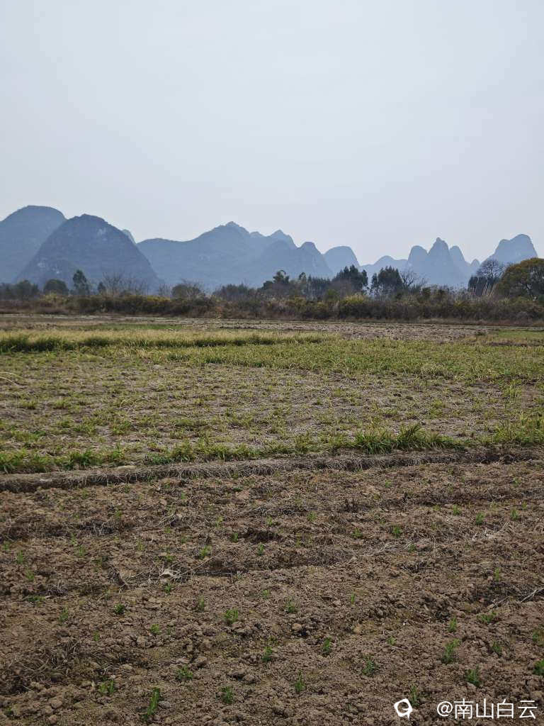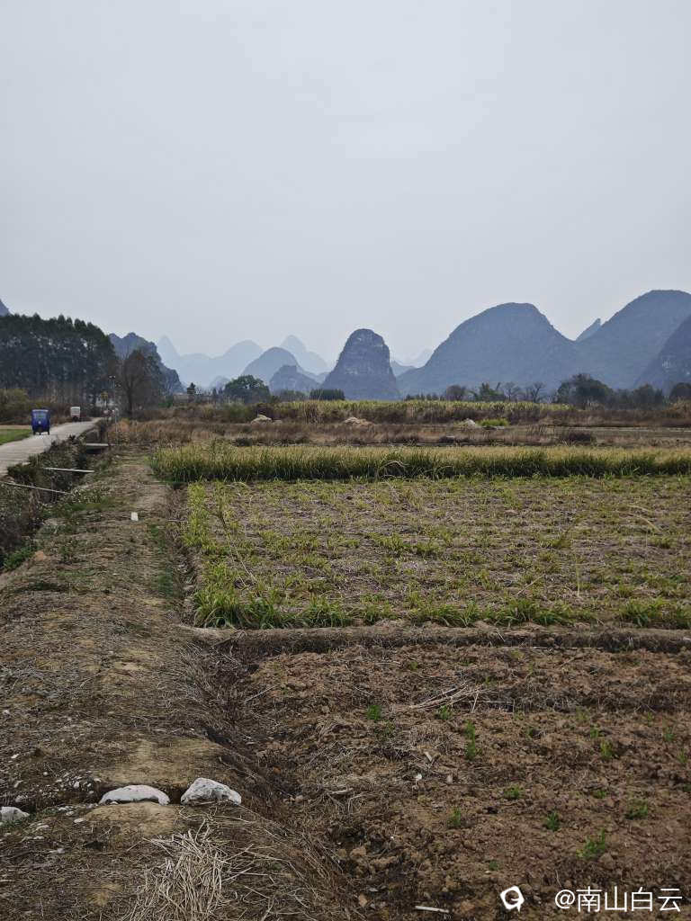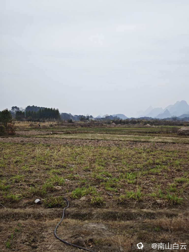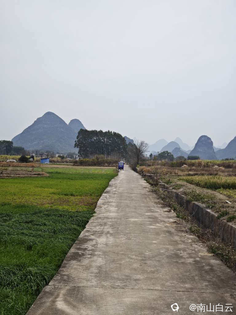 今天虽然缺少阳光,在领略田园风光时,也感到有些温暖。看到远方的群山,顿时心旷神怡。