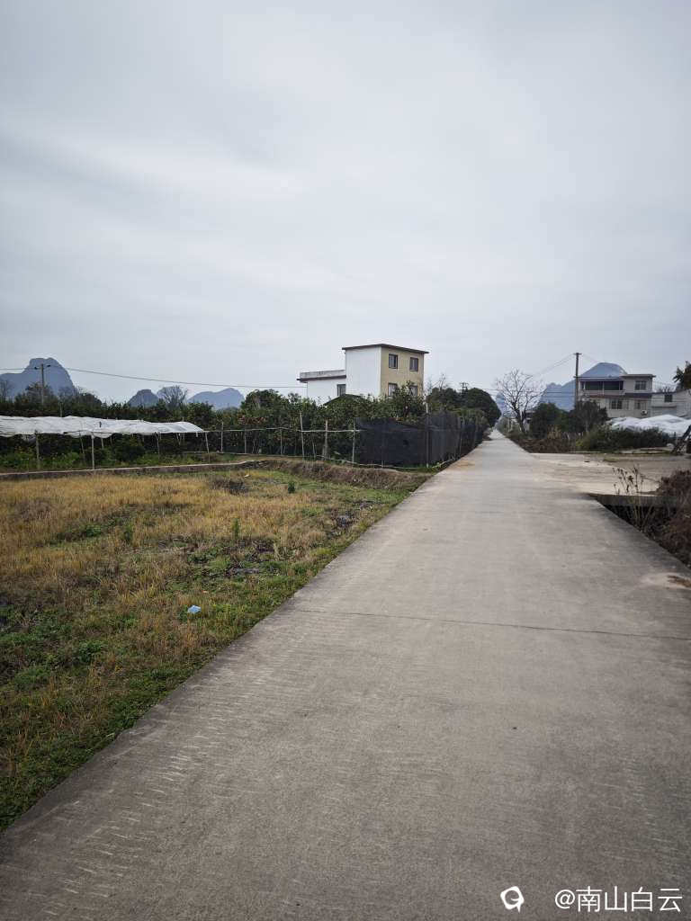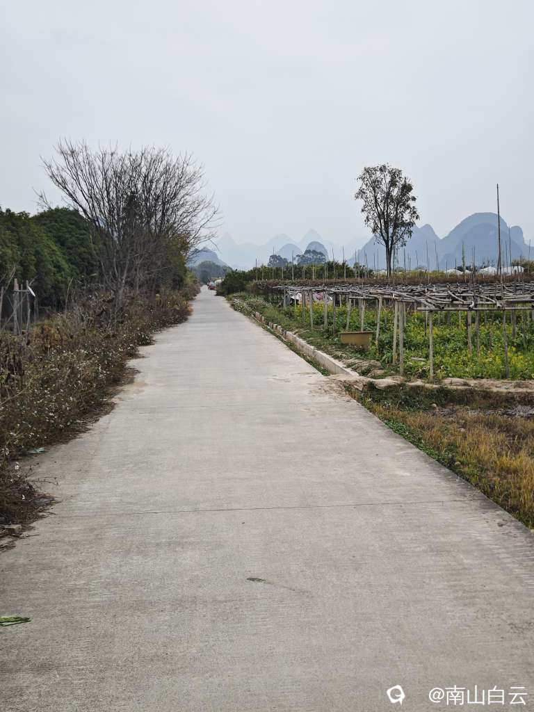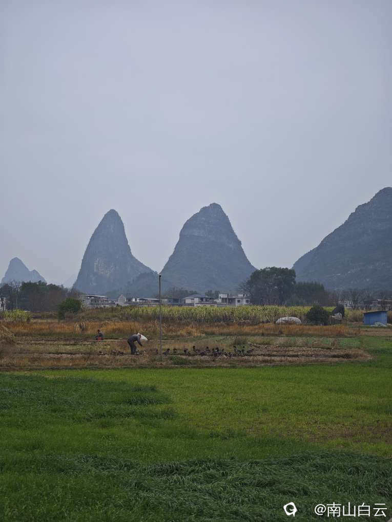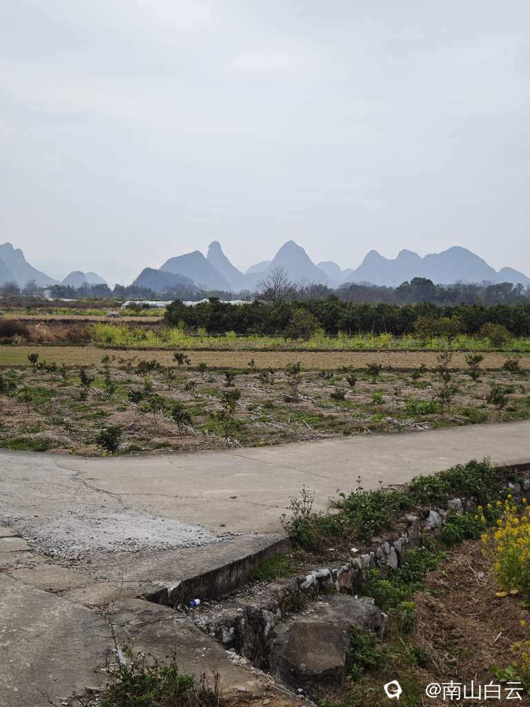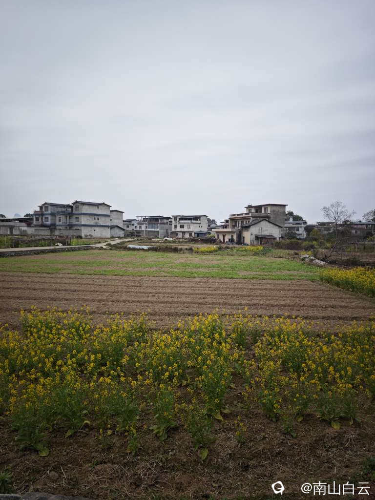 今天虽然缺少阳光,在领略田园风光时,也感到有些温暖。看到远方的群山,顿时心旷神怡。