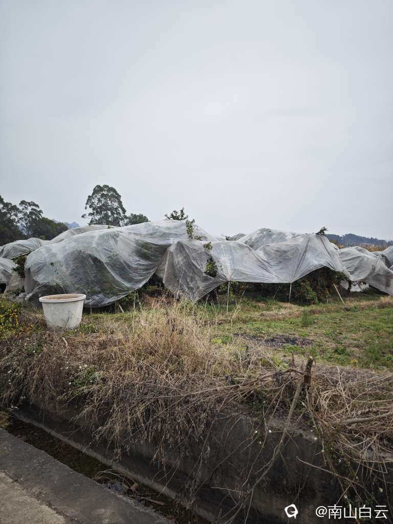 现在正是凛冬,天气寒冷。六塘盛产柑橘,果农为柑子园穿上冬衣。