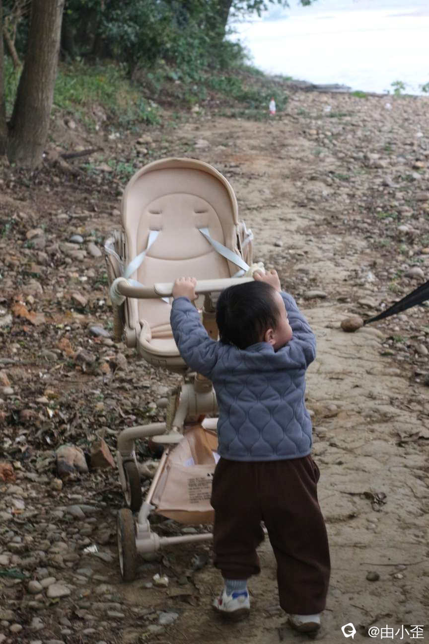 路都走不明白还坚持自己推车,一岁半的逞强娃儿。