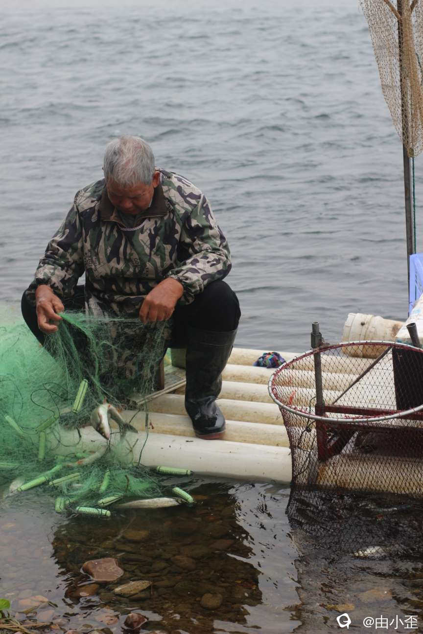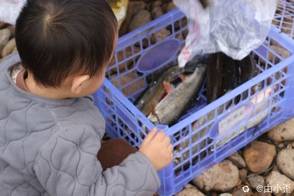 刚好遇到网鱼的,才冷呼呼从水里出来的,小伙伴偷偷跟我嘀咕,不知道这位蜀黍是不是老演员专门周末守在这里还是?哈哈哈!
