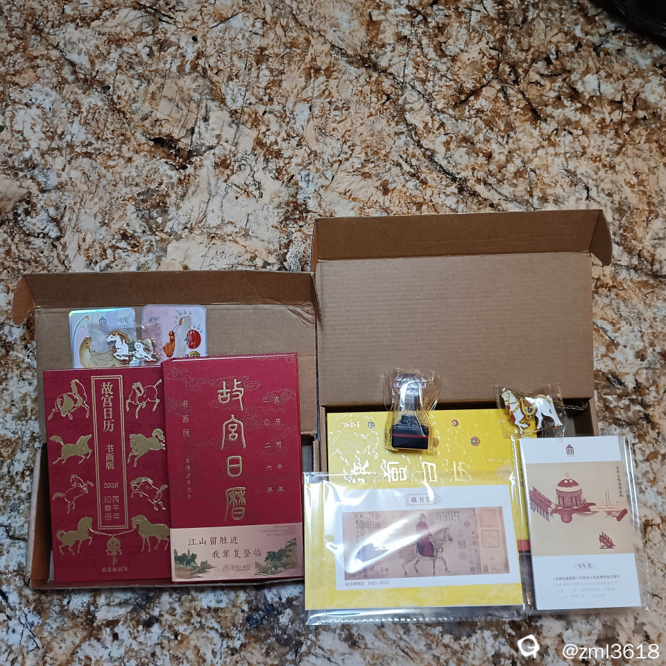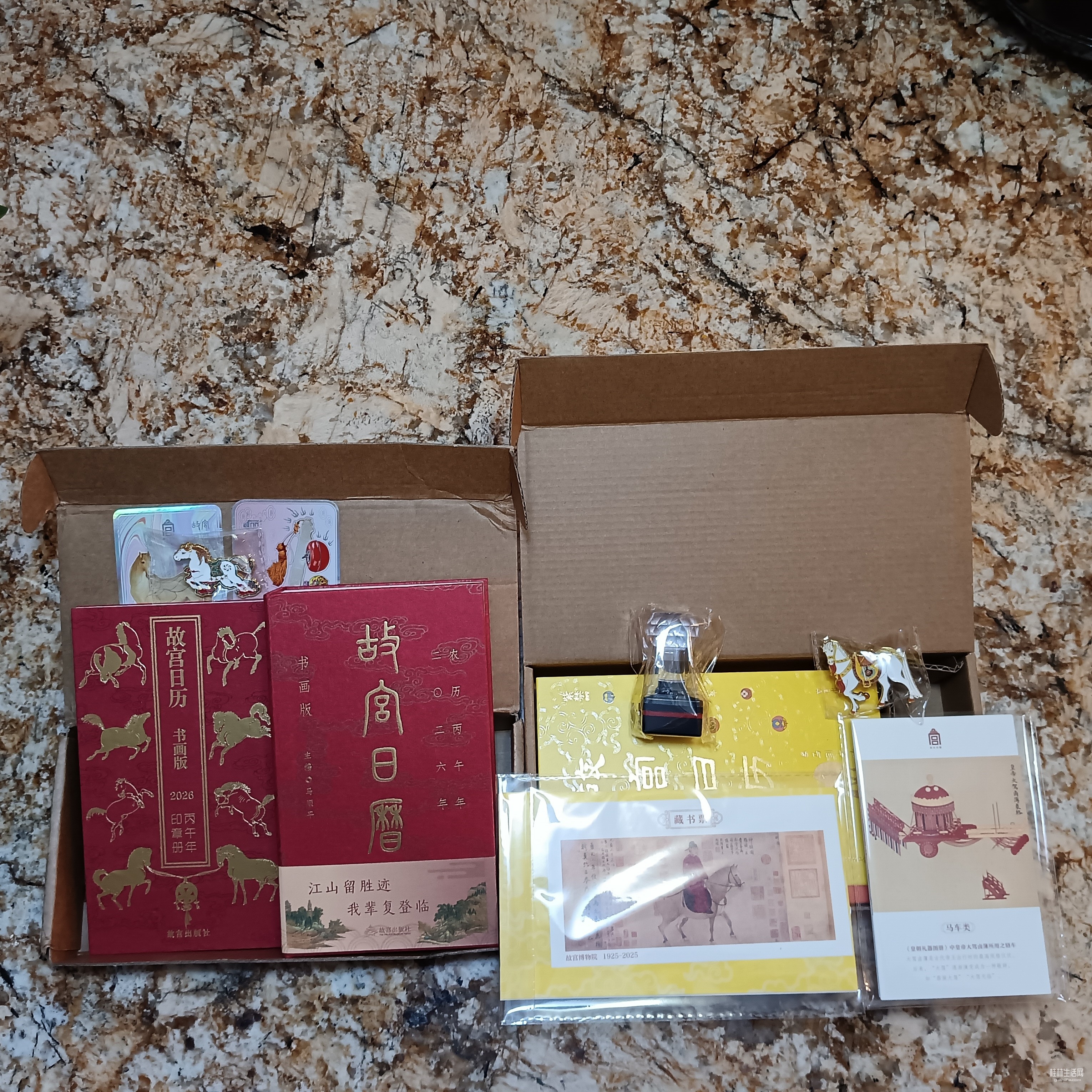 带去了女儿网购的故宫100年发行的有关马年的书,日历,很有纪念意义。