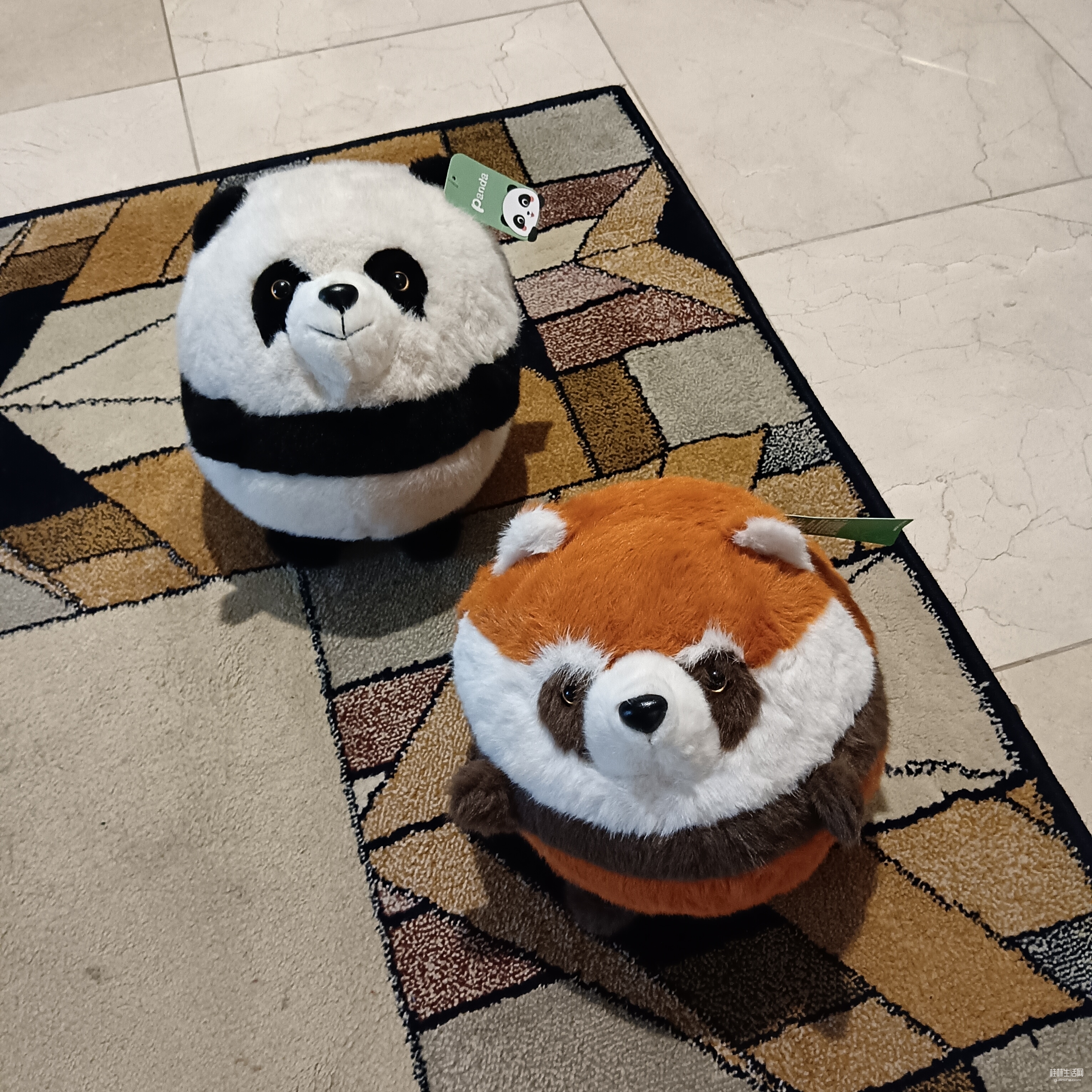 应小朋友要求而特意带的熊猫宝宝绒毛抱枕。熊猫宝宝呆萌呆萌的好可爱,让小朋友爱不释手。喜欢得不得了。